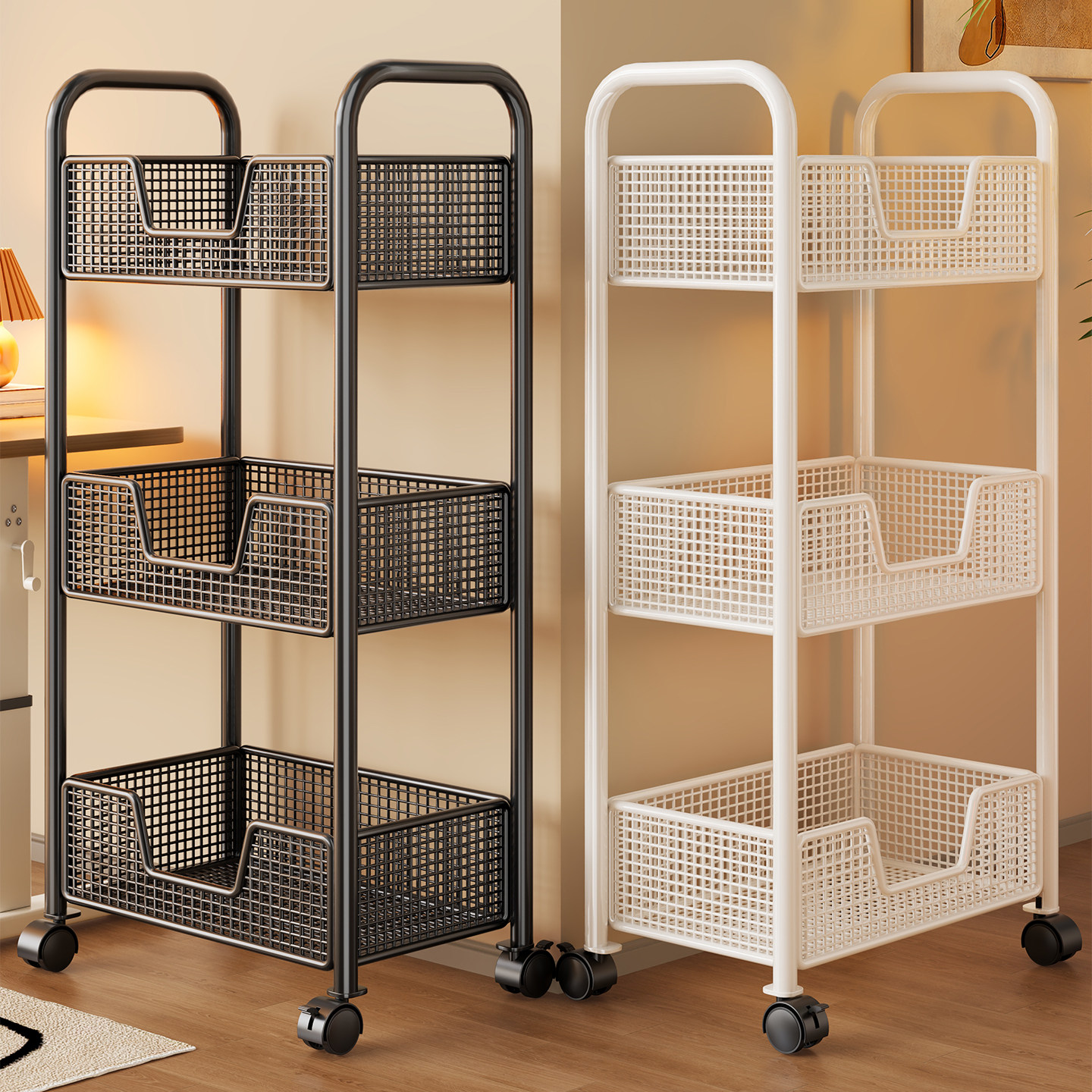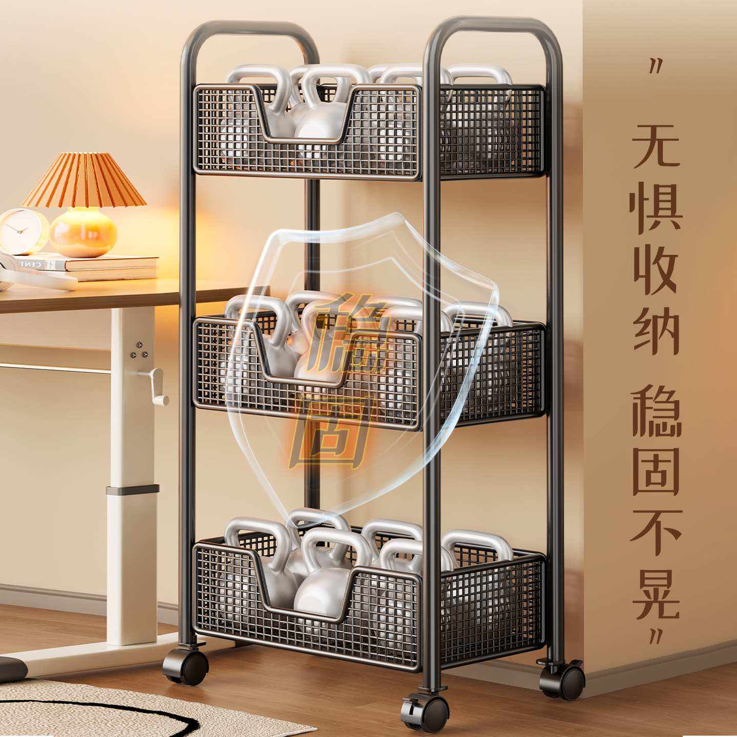 书包置物架学生桌下移动书架工位滑轮小推车办公室桌面书本收纳盒