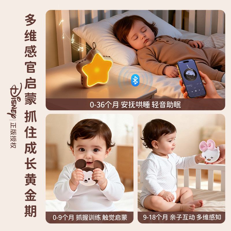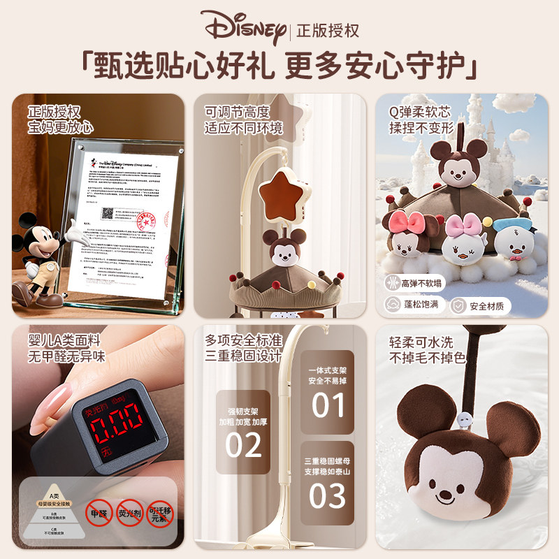 迪士尼床铃宝宝床头音乐旋转悬挂式摇铃新生婴儿车载挂件玩具礼盒