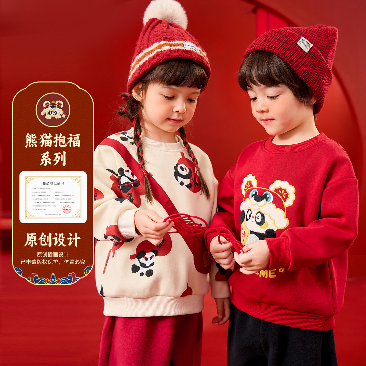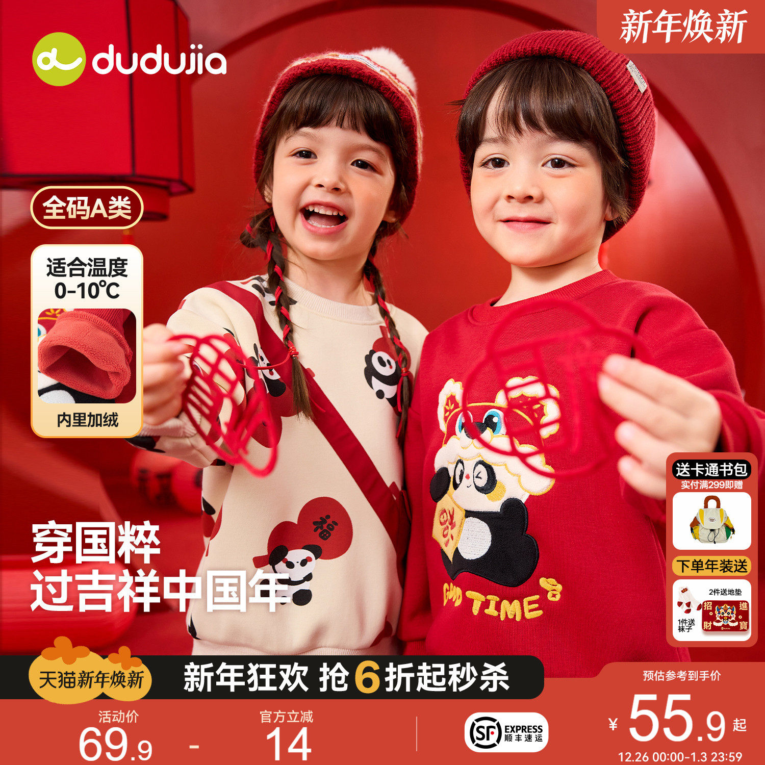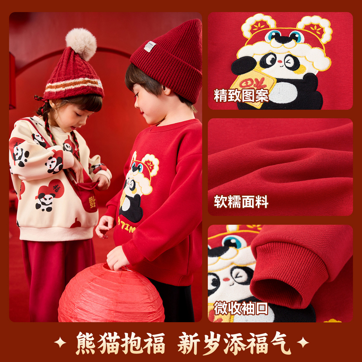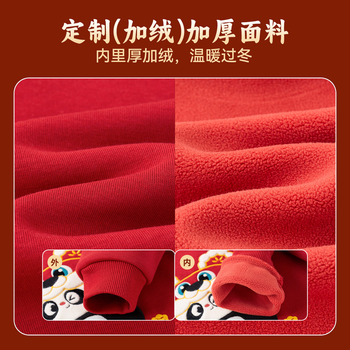 嘟嘟家儿童拜年服宝宝新年卫衣男童女童上衣冬季加绒加厚红色唐装