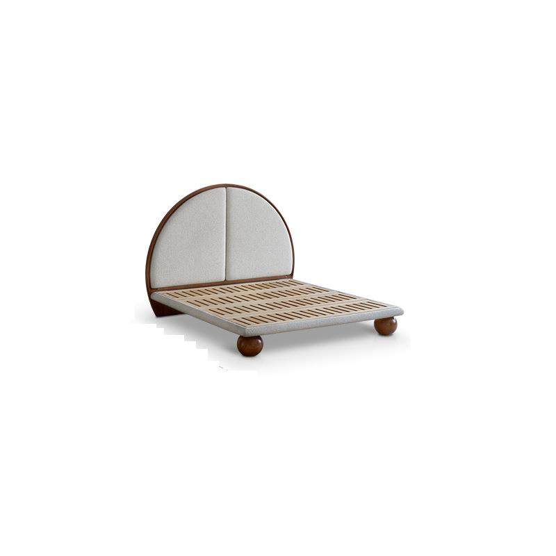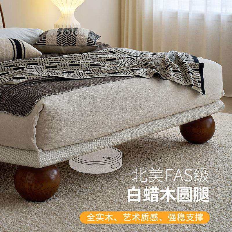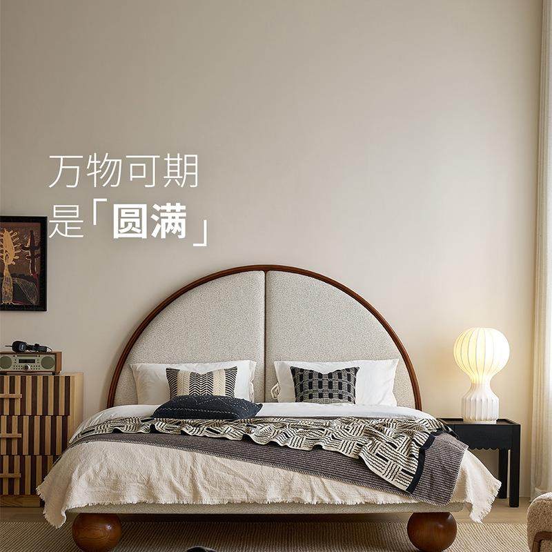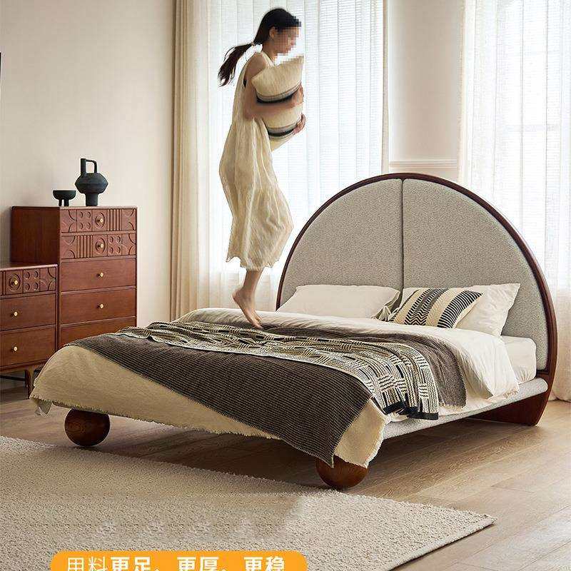 圆满实木布艺双人床1.8米齐边床中古风小户型卧室儿童圆床法式