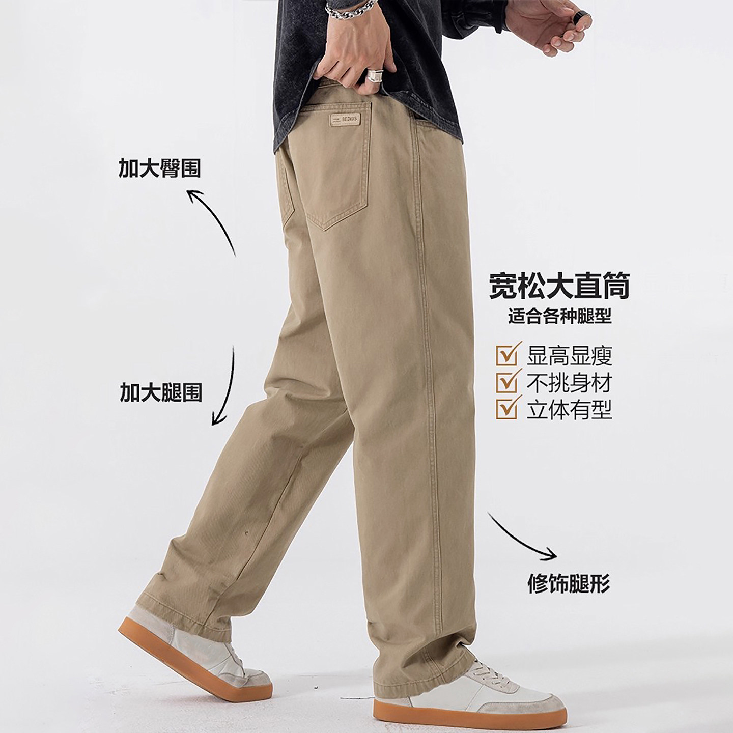 Artsdon/阿仕顿2025春秋高端男士轻商务舒适品质高腰直筒休闲裤潮