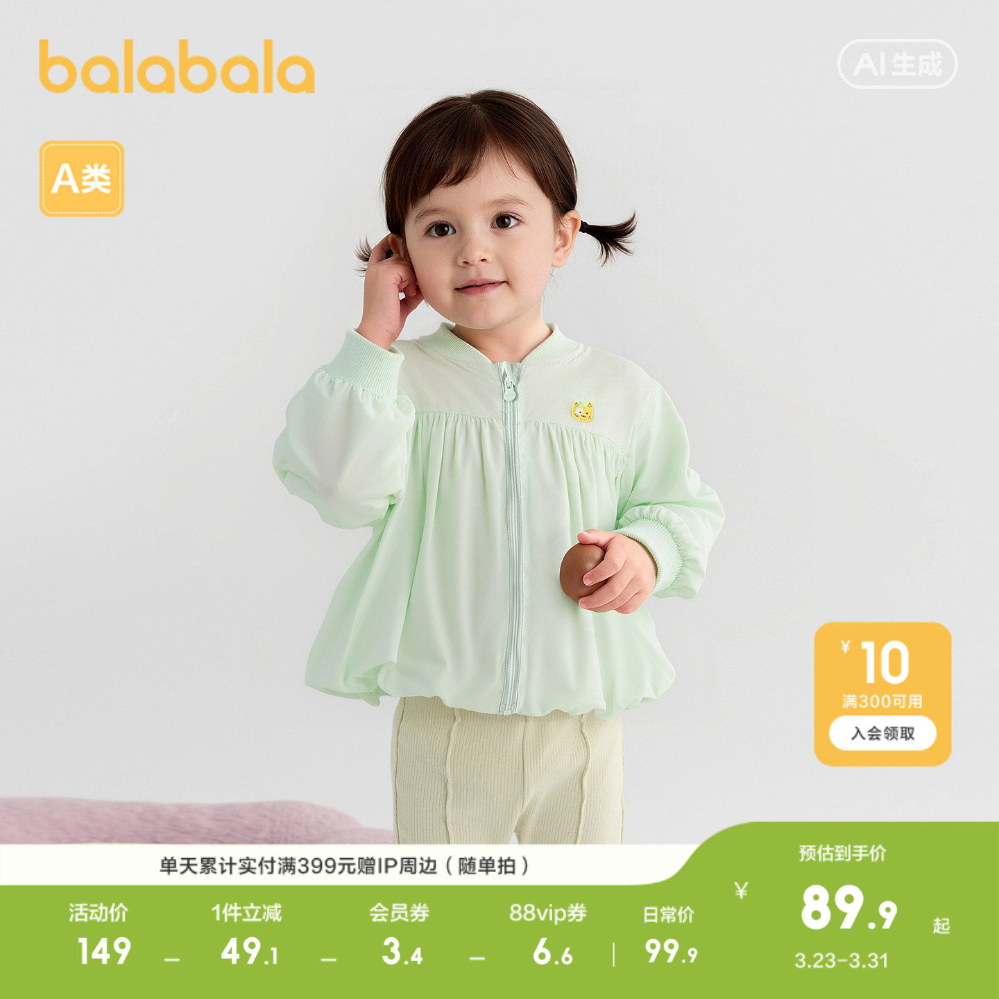 巴拉巴拉童装儿童外套女童上衣充满章仔可爱萌趣清新时尚甜美洋气