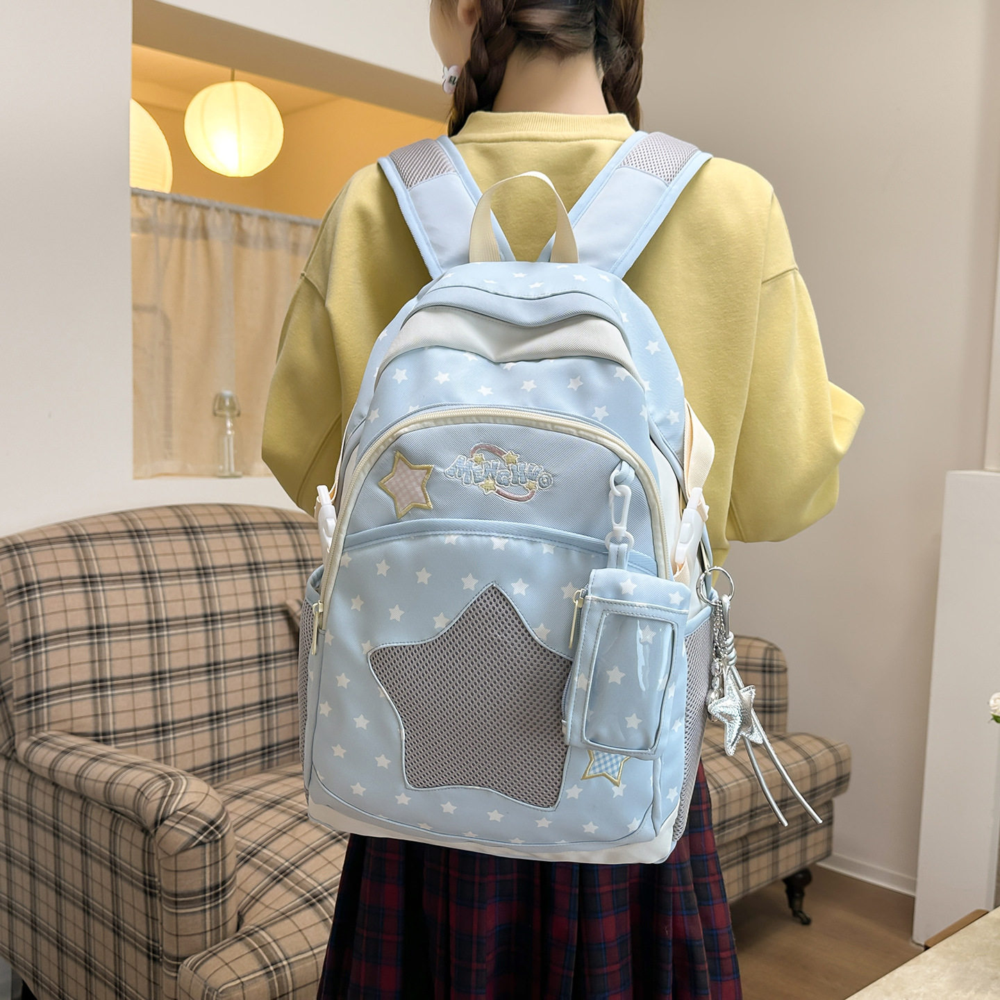 日系新款高颜值学生书包女清新甜美撞色初高中生大容量双肩背包