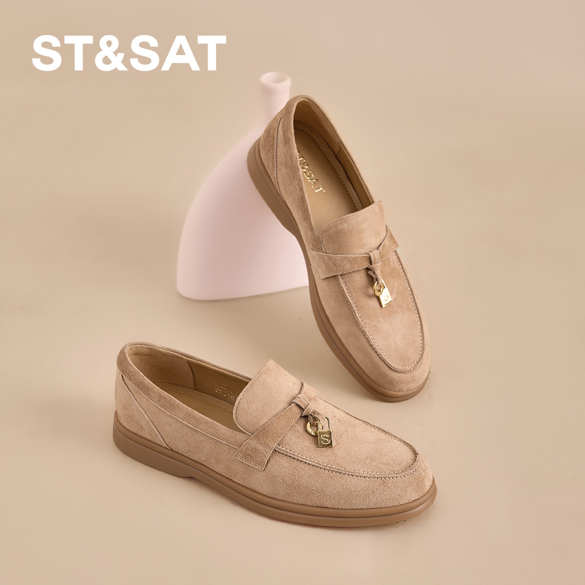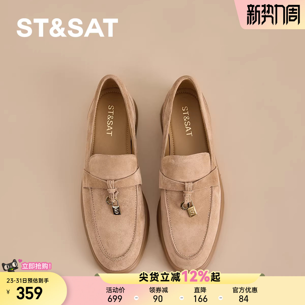 【头层羊皮】星期六反绒乐福鞋女鞋豆豆鞋一脚蹬不累脚春秋单鞋子