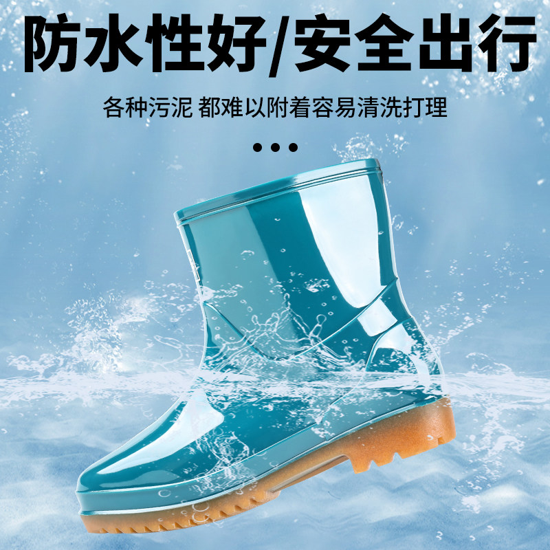雨鞋女加绒保暖水鞋中筒雨靴短筒防滑厚底水靴厨房防水胶鞋女