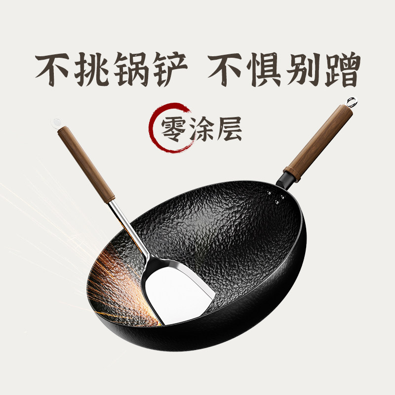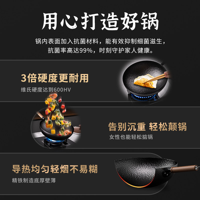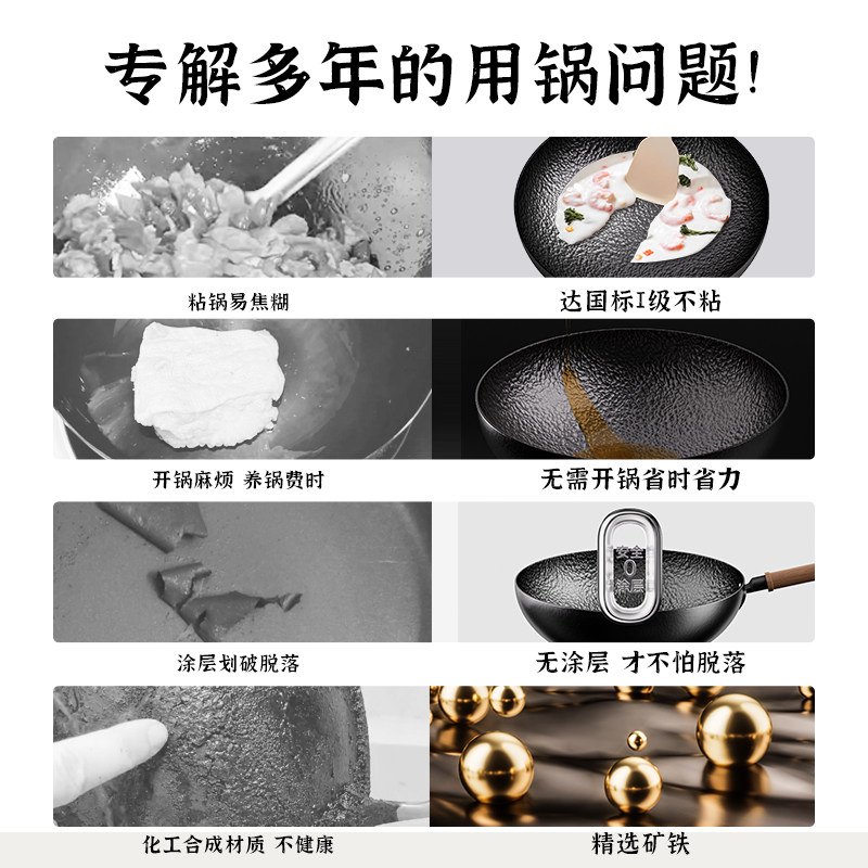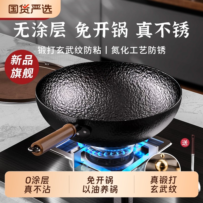 铁锅官方旗舰炒菜锅老式炒锅铁锅家用不粘锅无涂层燃气灶适用