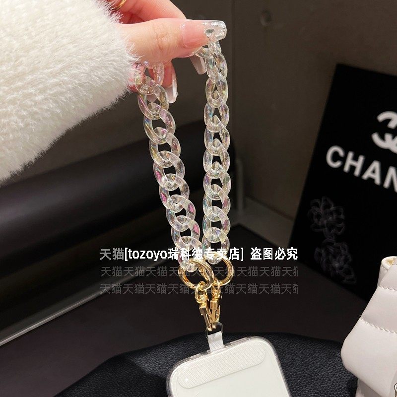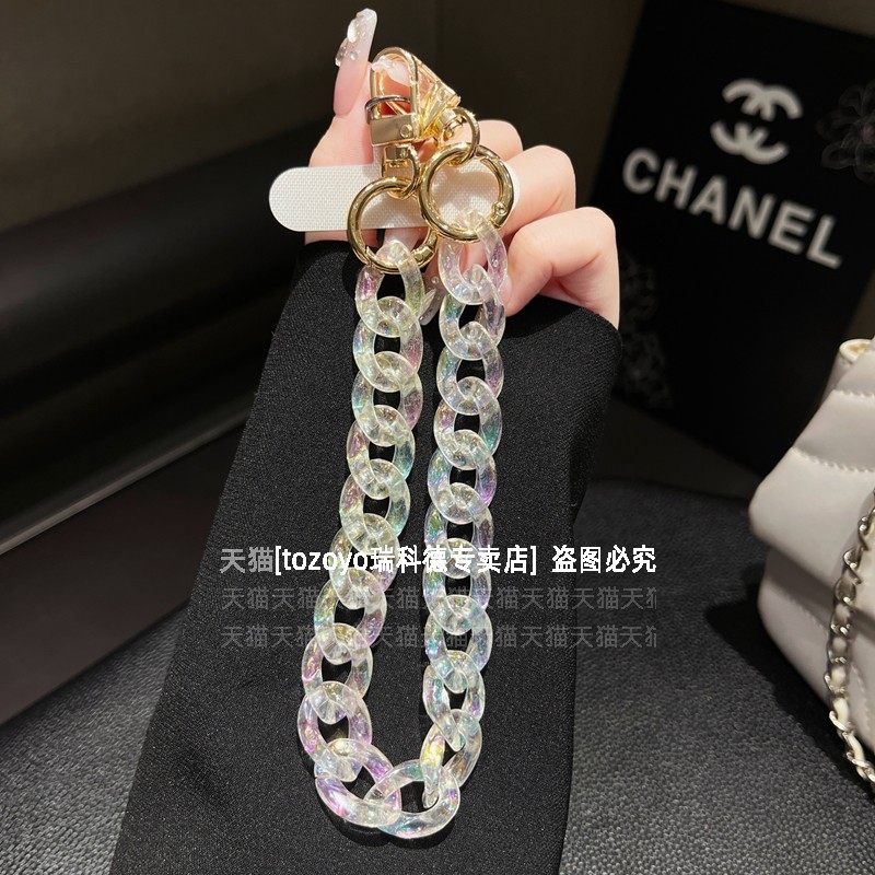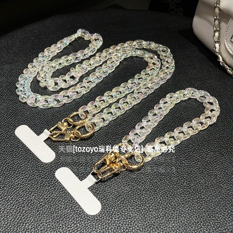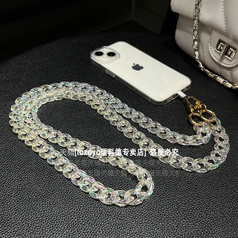 炫彩镭射手机链扣链斜挎可背挂链背包背带包包链条手腕手链腕带透明高级感双扣防丢挂绳钥匙网红女夹片垫片壳
