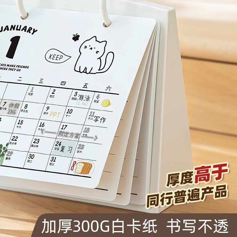 2026年台历创意简约桌面摆件马年可爱自律打卡日历本计划本ins风2025年考研日历商务办公记事月历台历本定制