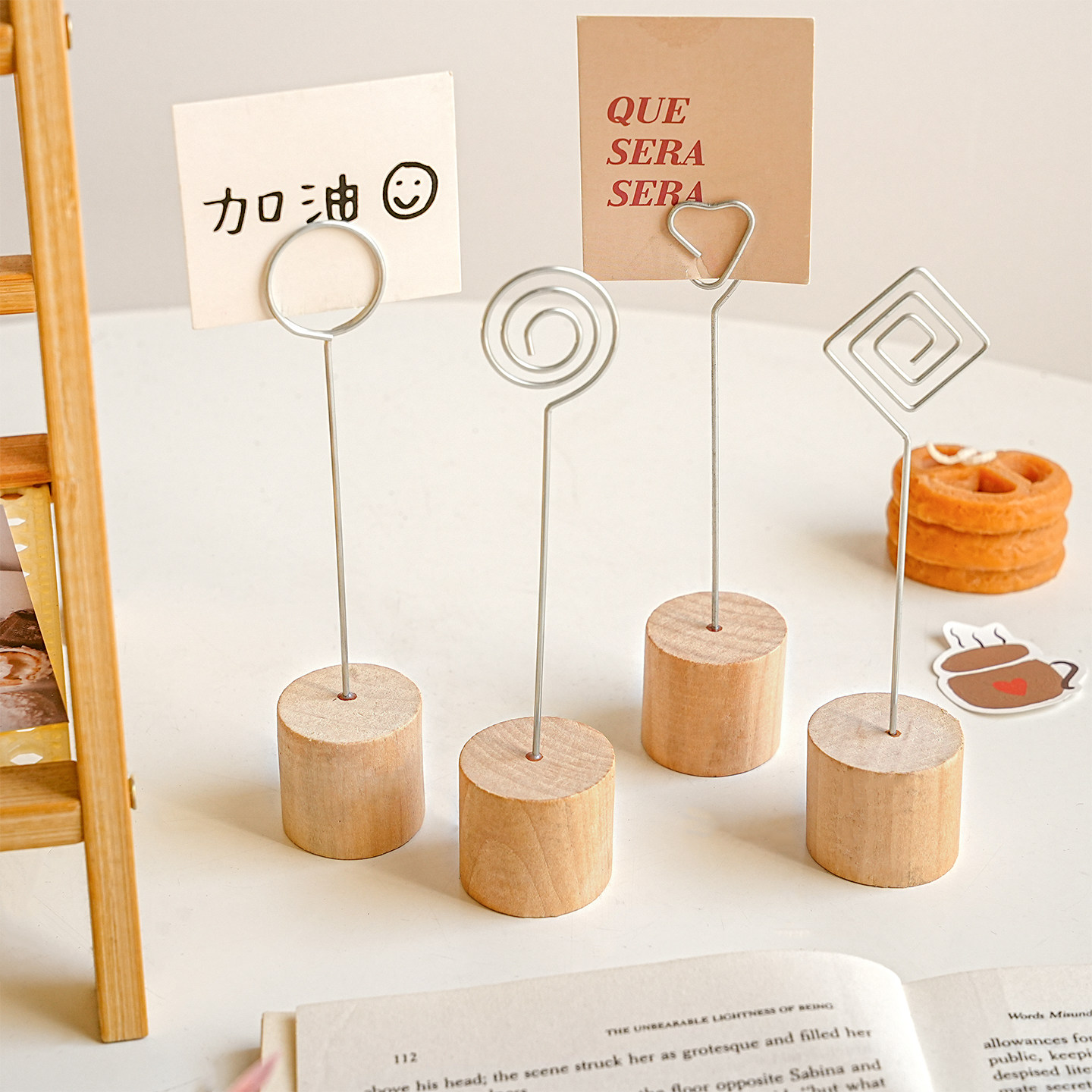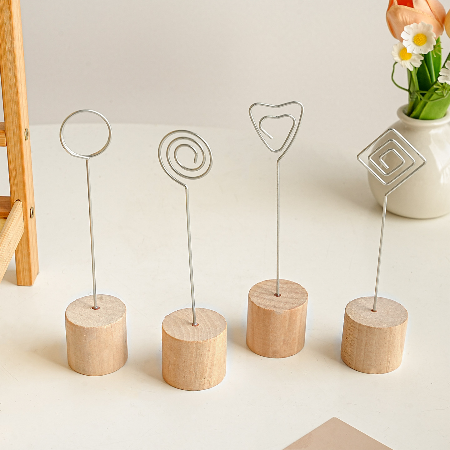 木质立式照片夹创意桌面装饰摆件名片夹卡片夹留言便签夹展示架