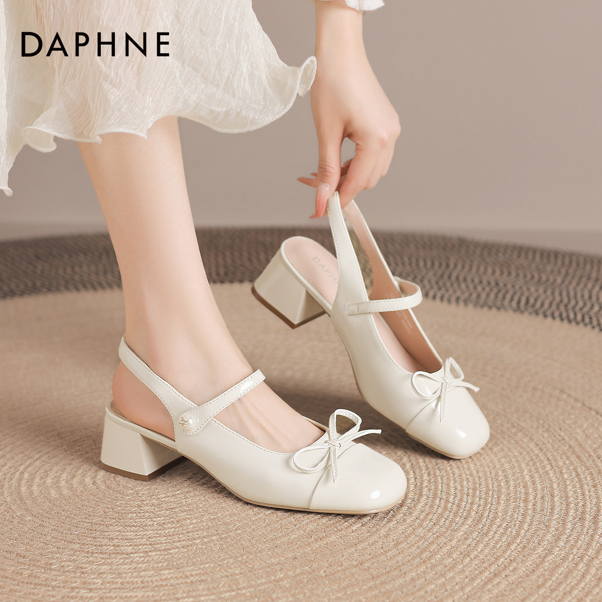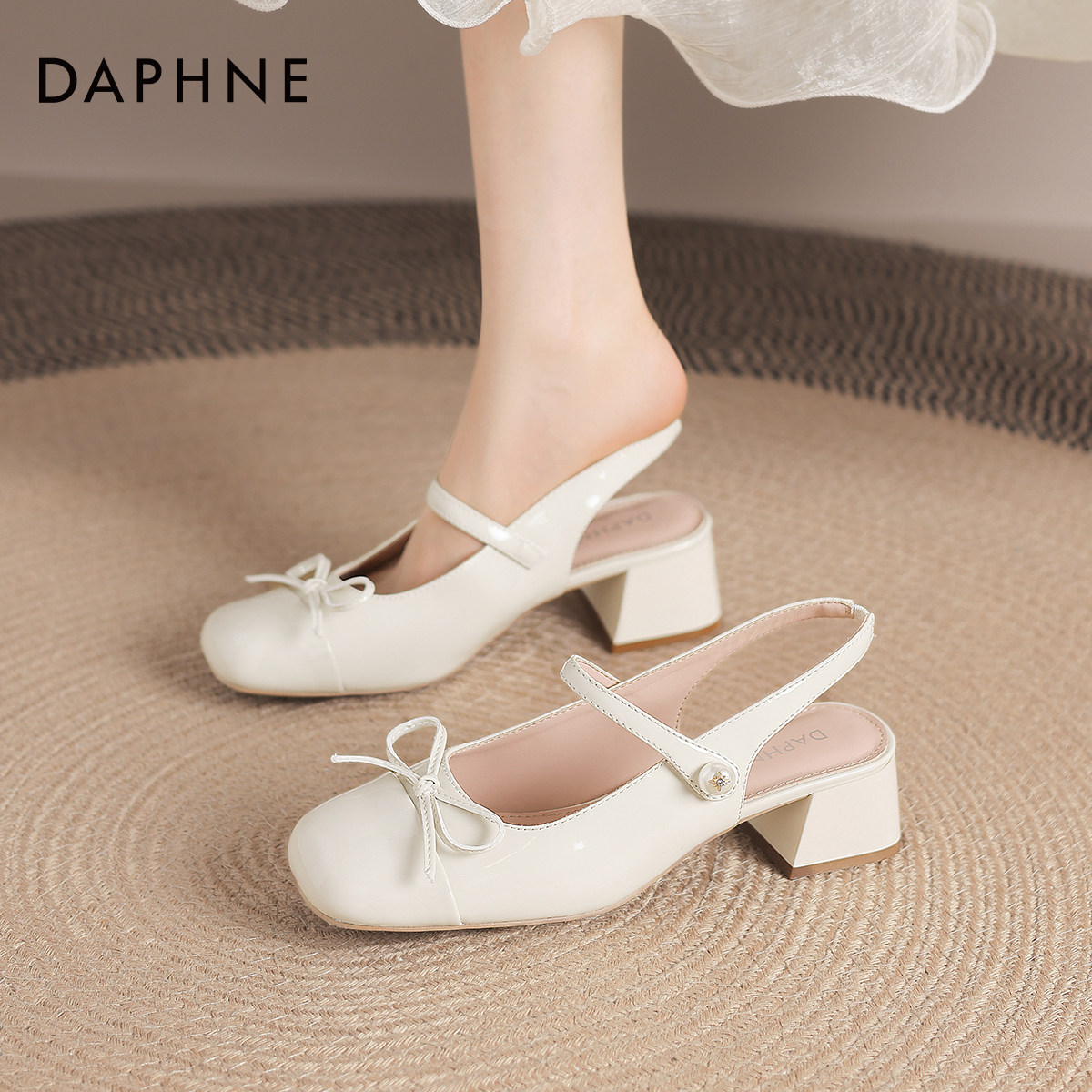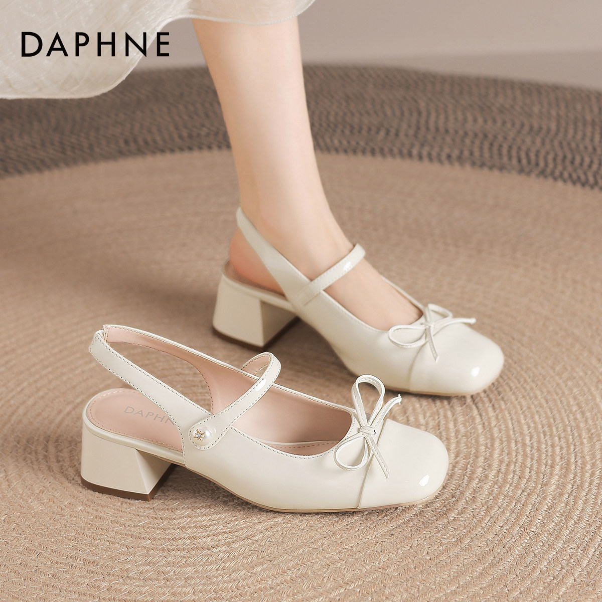 达芙妮玛丽珍凉鞋女款2025新款夏季外穿包头法式粗跟蝴蝶结高跟鞋