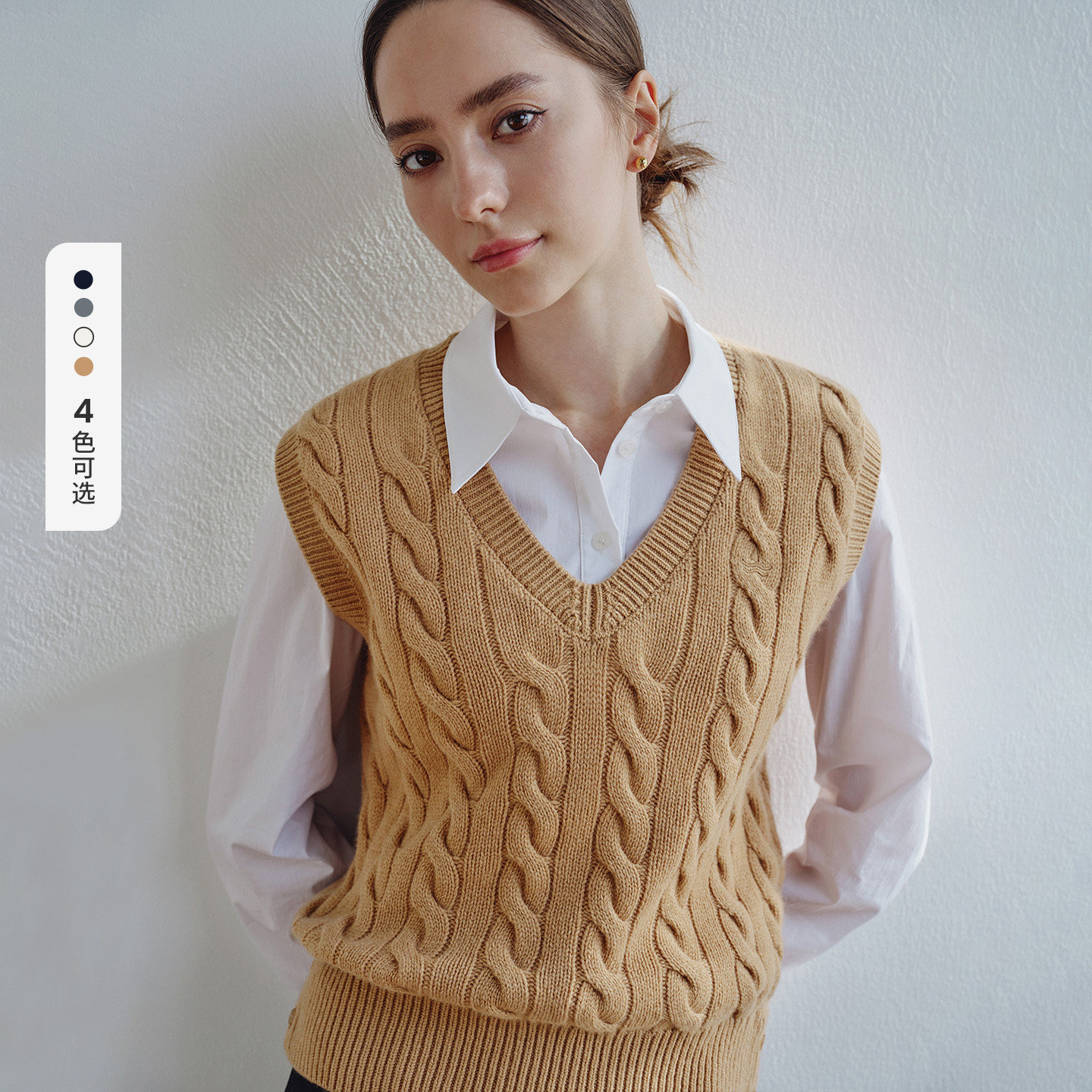 Navigare意大利小帆船V领无袖毛衣女2026春季新款通勤纯羊毛背心