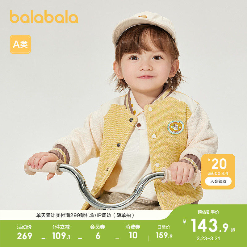 巴拉巴拉童装外套宝宝上衣男童婴儿棒球服撞色设计时髦洋气帅气萌