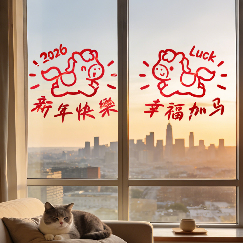 2026新年窗花马年装饰新款玻璃门贴纸静电橱窗贴春节氛围布置贴画