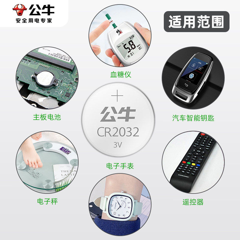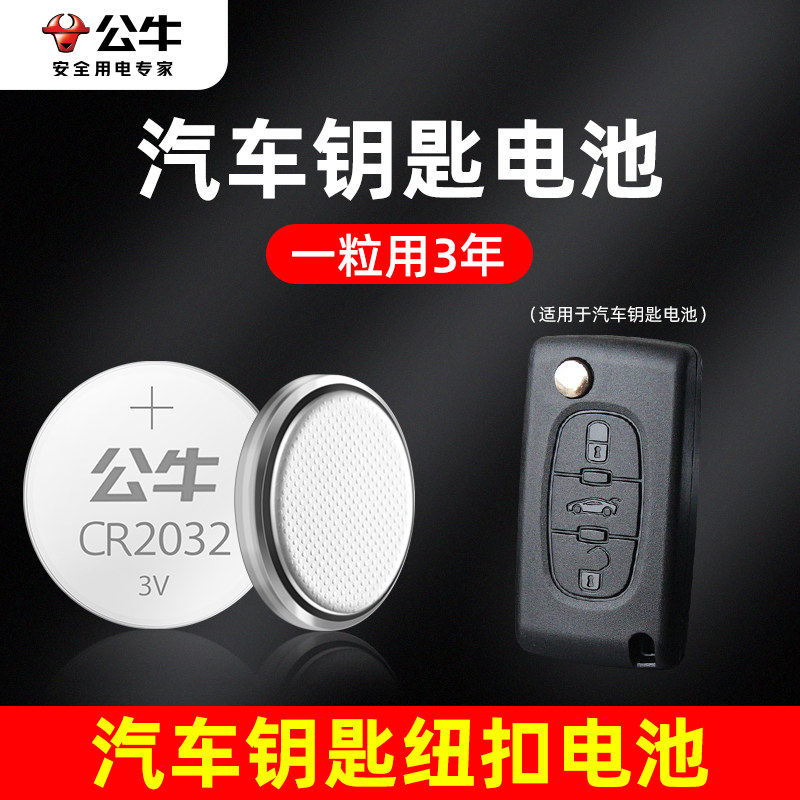 公牛cr2032/CR2025纽扣电池名爵哪吒红旗小鹏雅迪五菱东南大众吉利宝骏别克奇瑞汽车钥匙遥控器专用圆形电池