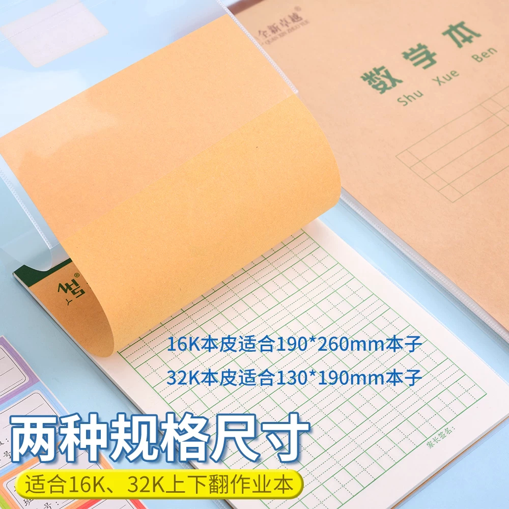 透明竖翻包书皮作业本子皮大号16k作业本皮包书套小号32k小学生专用的上下翻作业套保护套简约风文具16开32开
