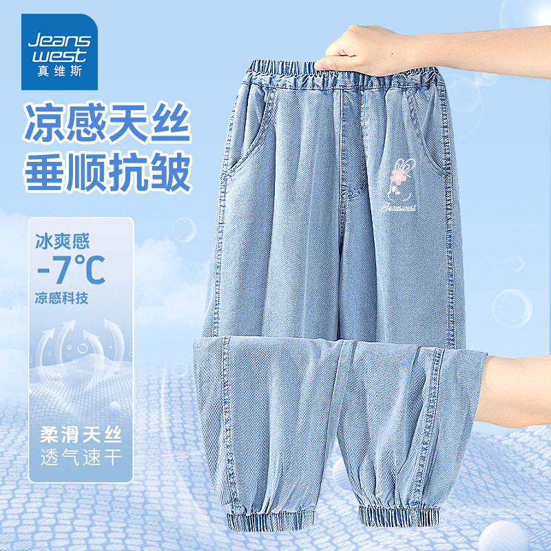 真维斯童装女童牛仔裤夏季薄款2025新款女大童防蚊裤防晒儿童裤子