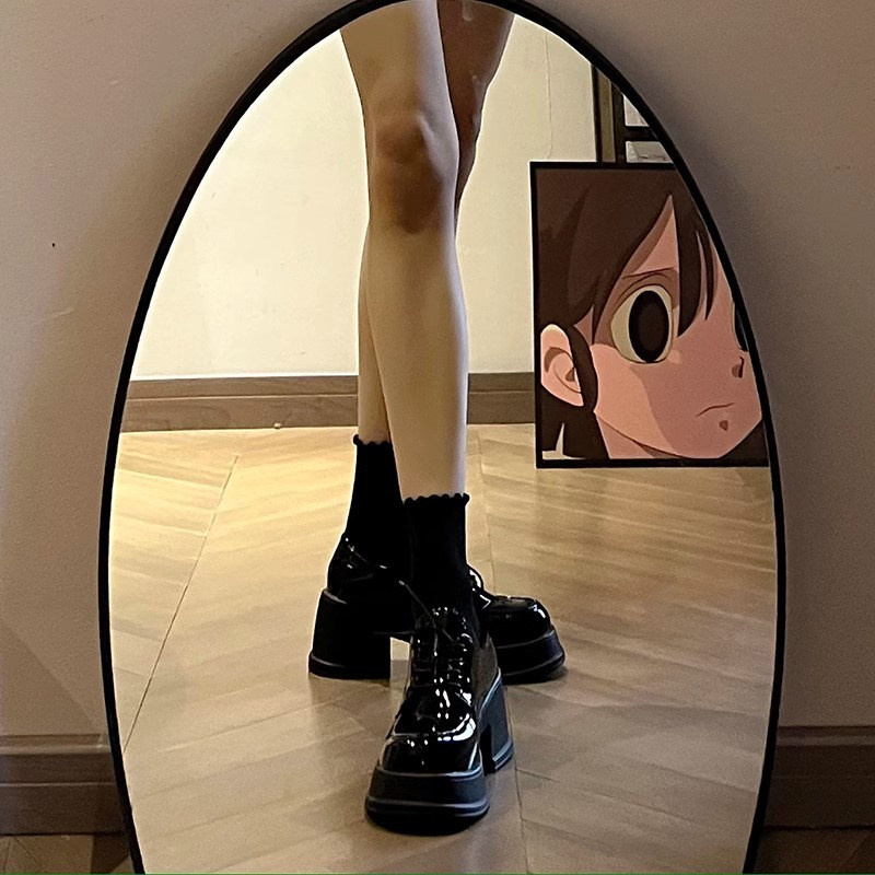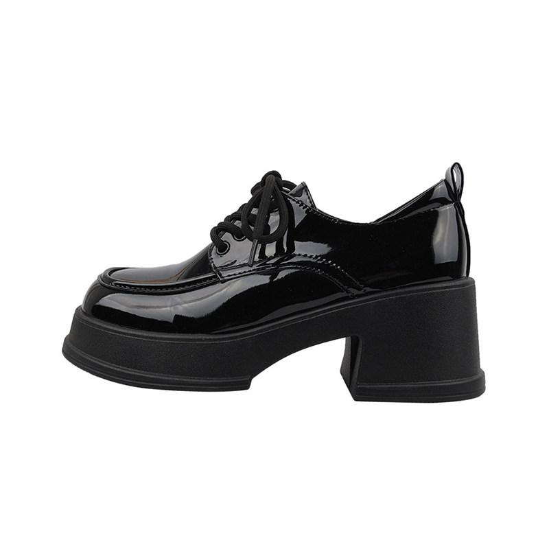 黑色厚底小皮鞋女款夏季增高粗跟玛丽珍鞋松糕学院英伦高跟乐福鞋