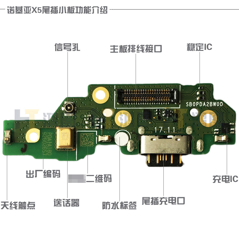 适用于诺基亚X5尾插小板 TA-1109充电USB接口送话器小板排线模块