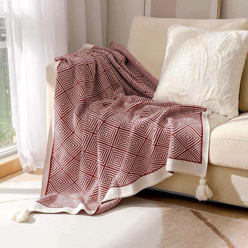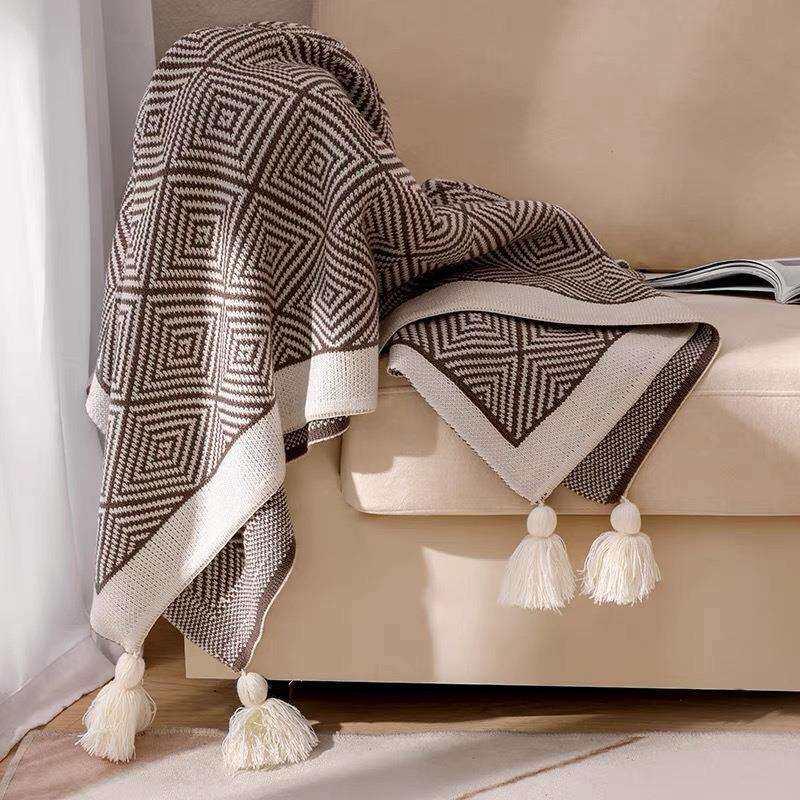 复古盖毯披肩轻奢软装沙发搭毯搭巾单人午休毛毯黑白几何针织毯