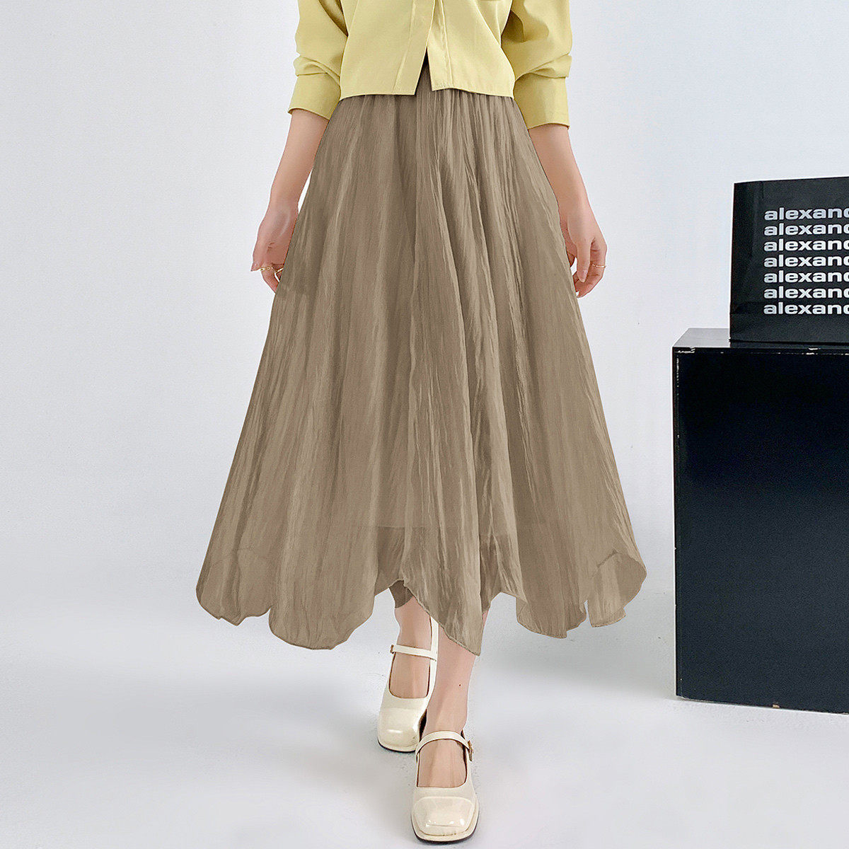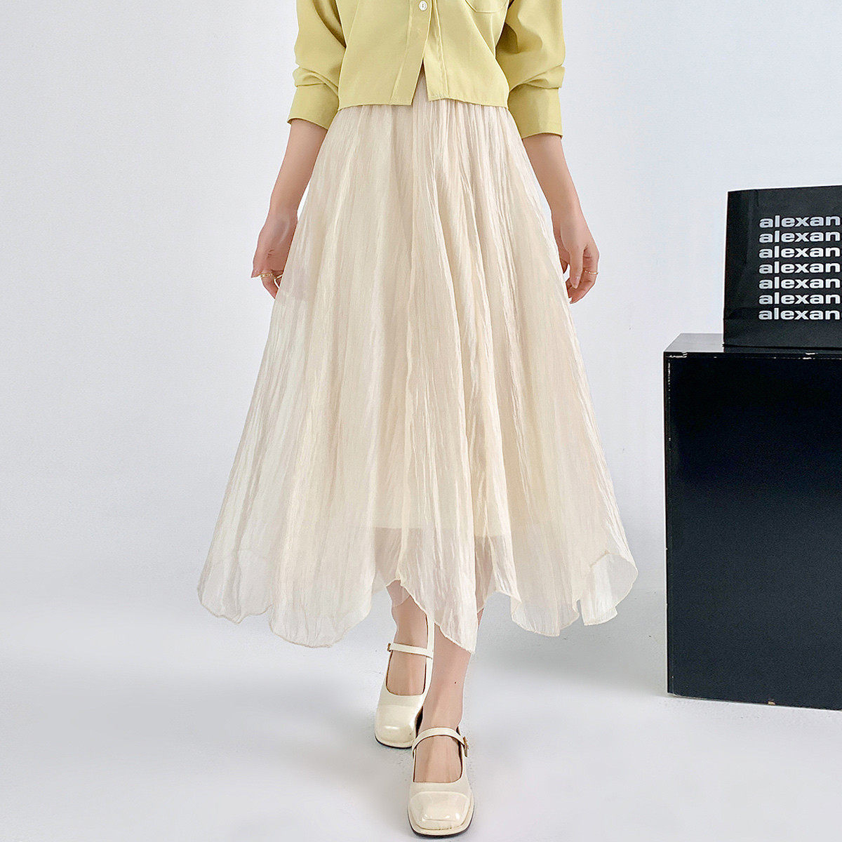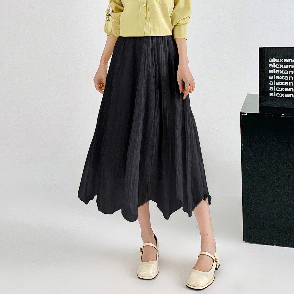 RAPPEYE 设计感褶皱折叠伞裙显瘦高腰不规则A字裙小个子半身裙女