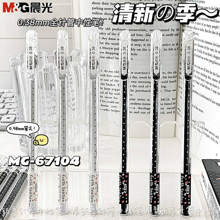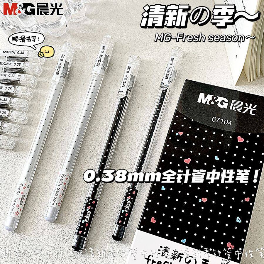 晨光清新季中性笔0.38mm可爱超萌水笔碳素黑全针管超萌速干学生用