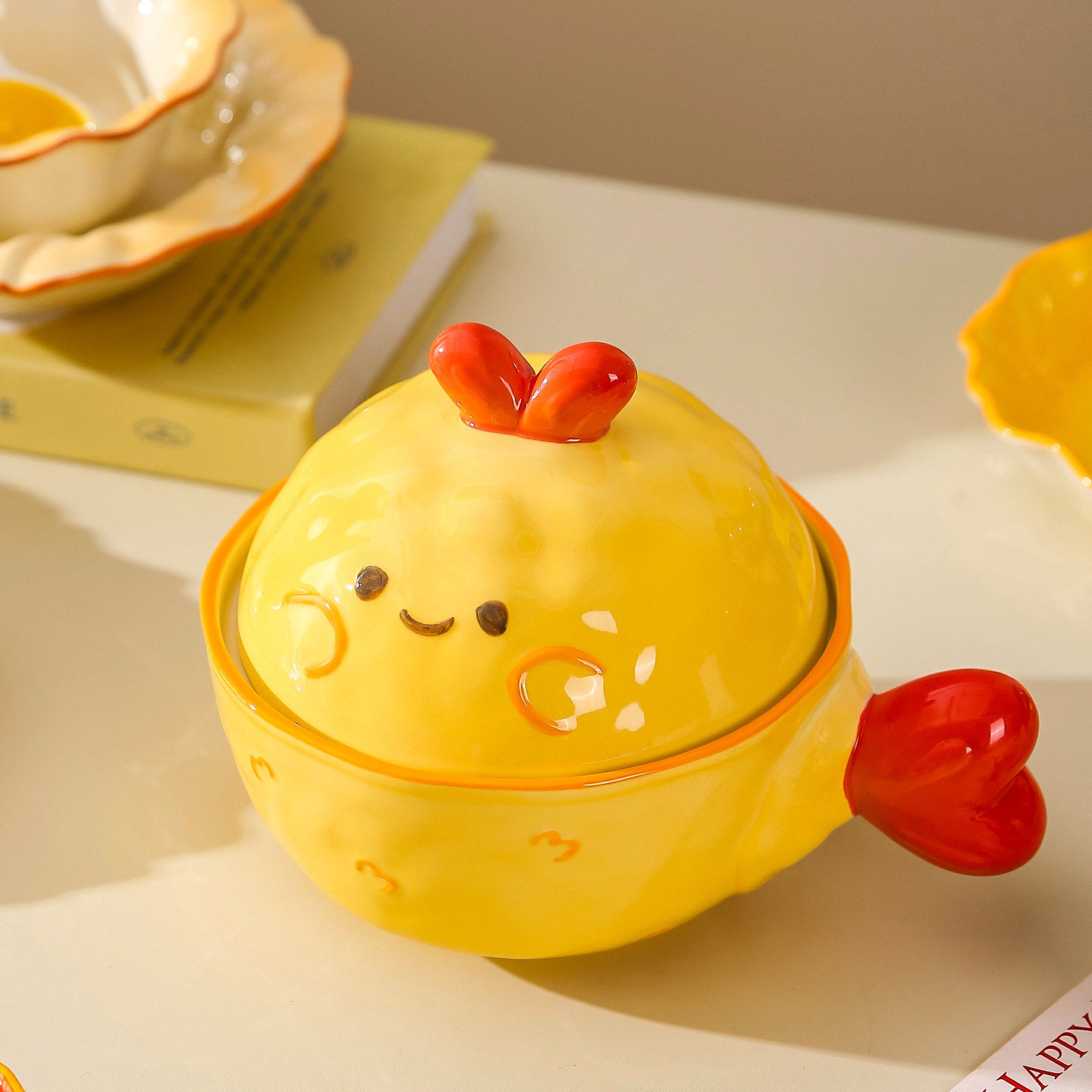 烤箱专用陶瓷烤碗家用带手柄碗水果沙拉碗卡通学生宿舍单柄泡面碗