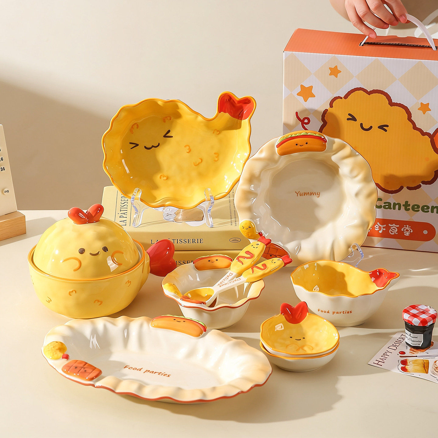 川岛屋可爱炸虾餐具套装家用一人食碗碟碗筷搬家乔迁生日礼物女生