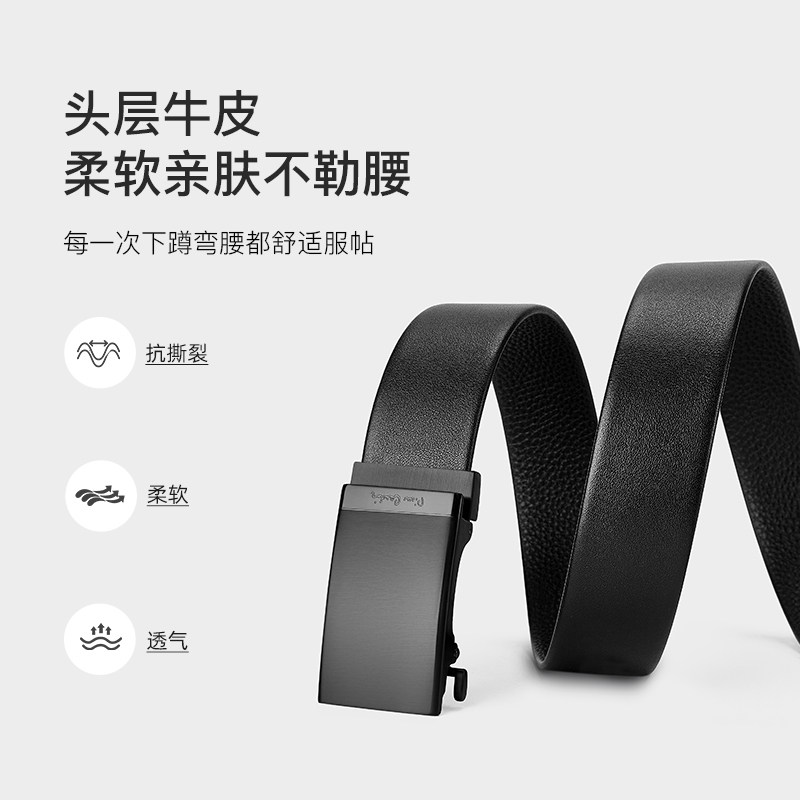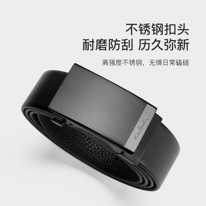 【不锈钢】皮尔卡丹皮带男士真皮商务腰带头层牛皮正品高档裤腰带