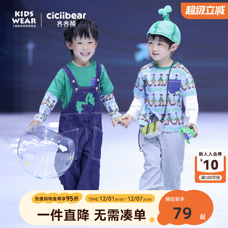 [佳佳同款][小树人]齐齐熊男童t恤长袖秋装宝宝打底衫儿童假两件