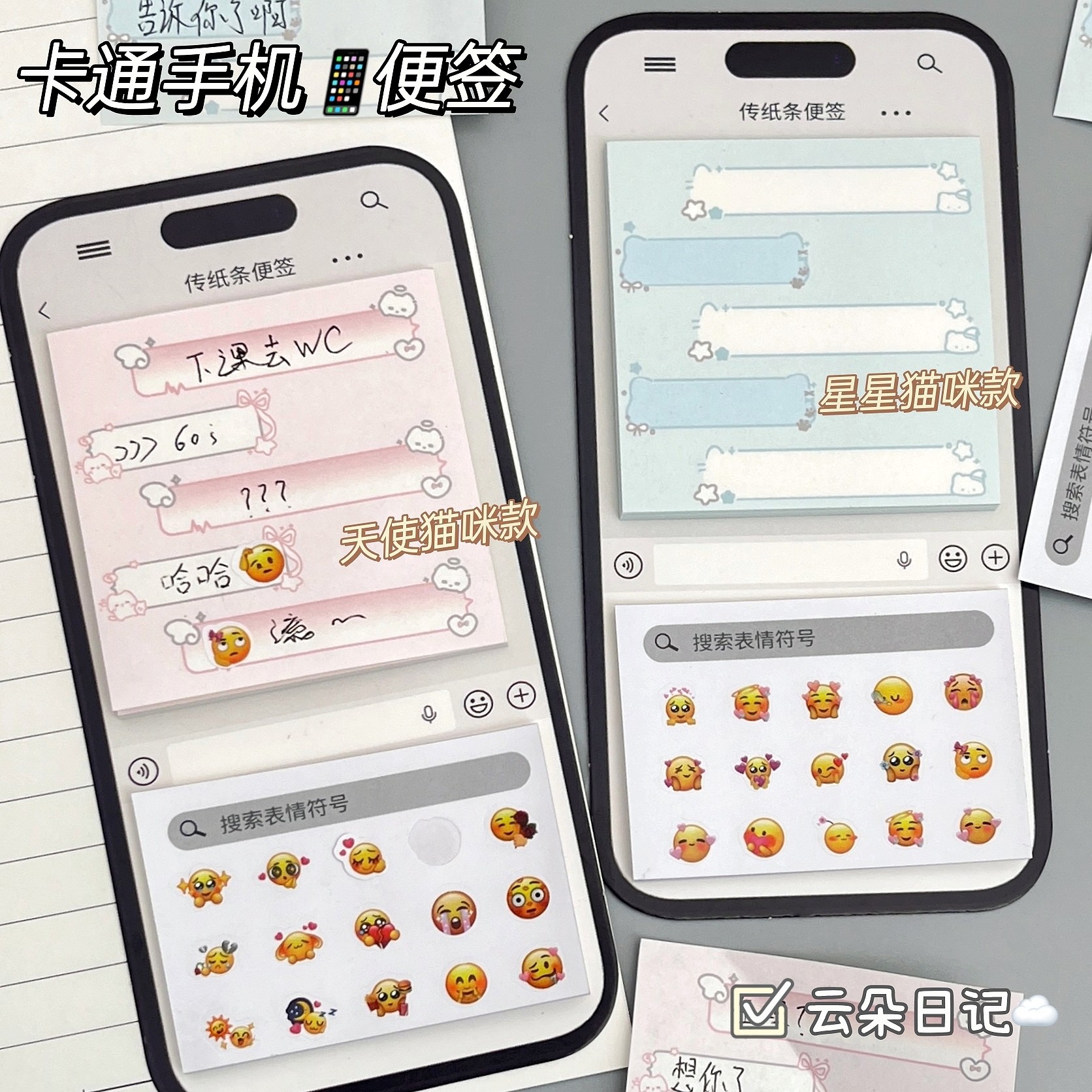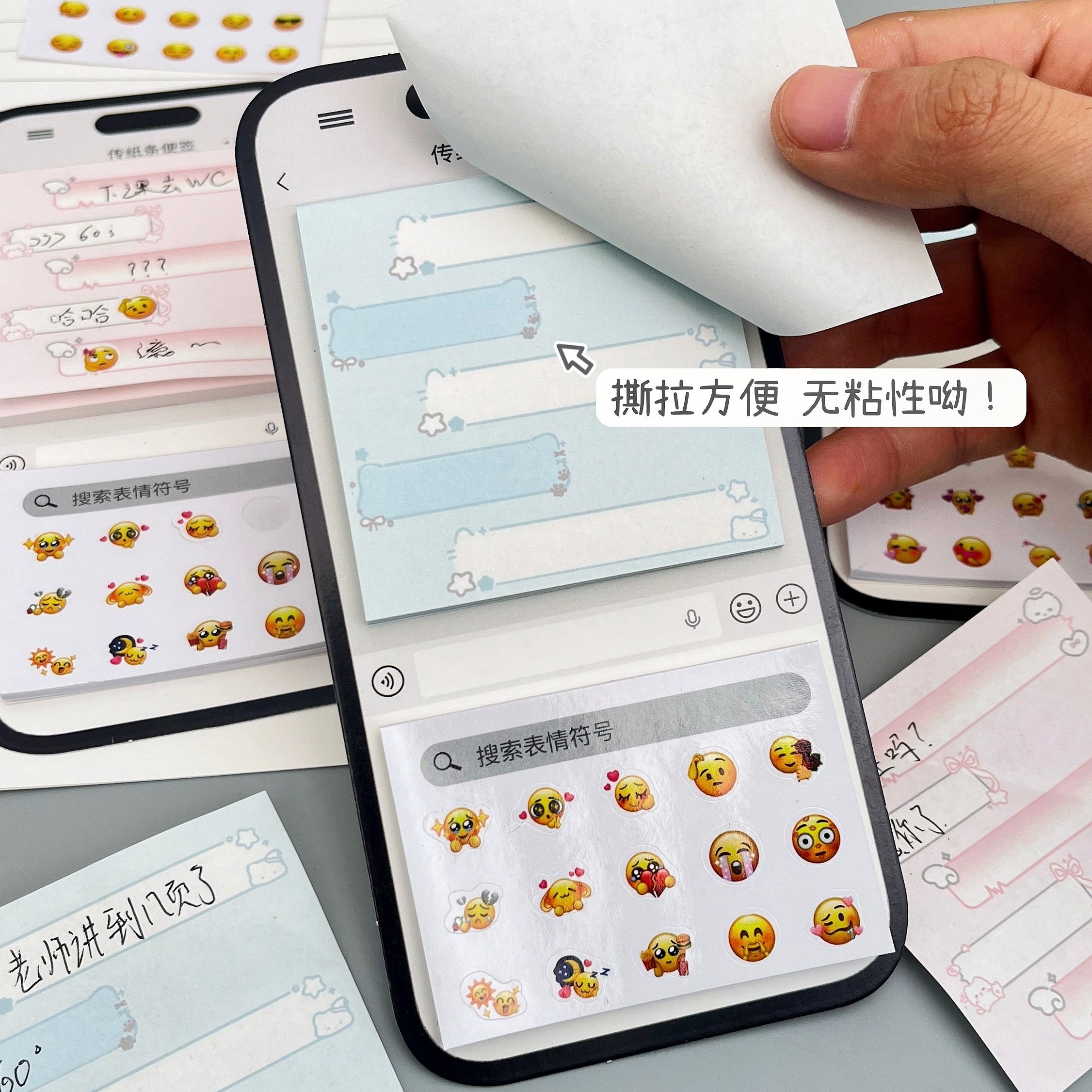 手机绿泡泡聊天便签贴纸创意学生搞怪纸条Emoji表情ins聊天便利贴传纸条便签猫咪主题可爱便签本聊天框便签纸