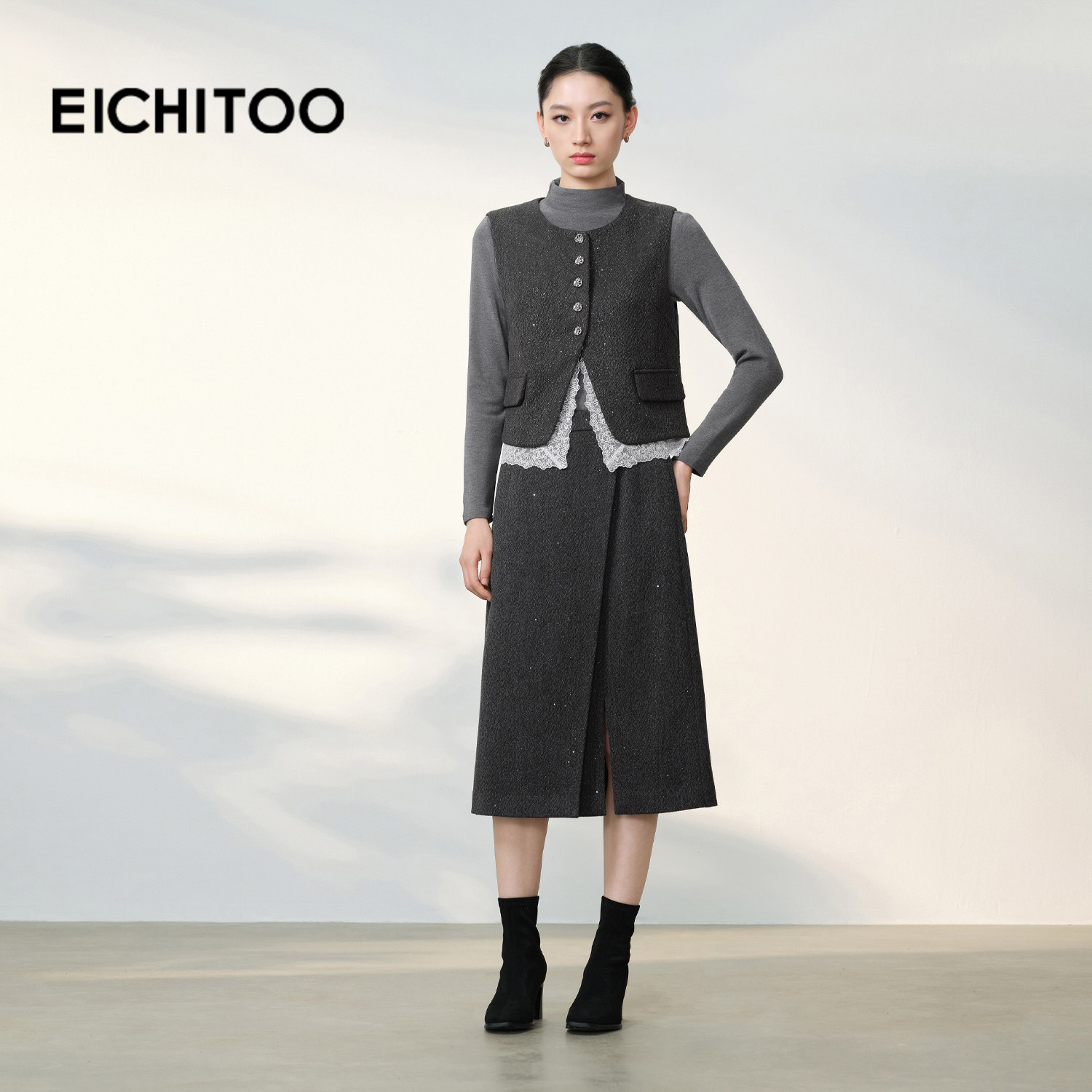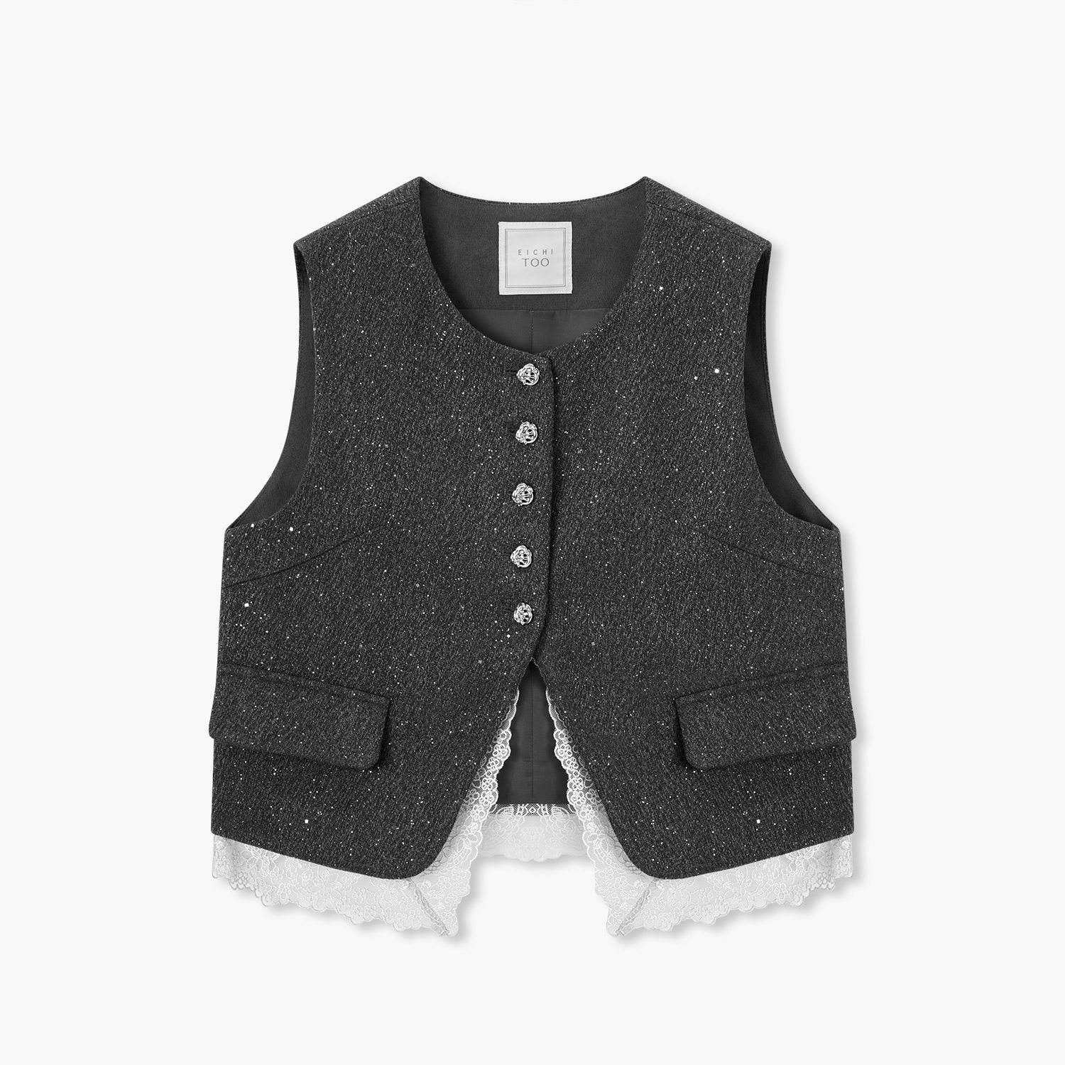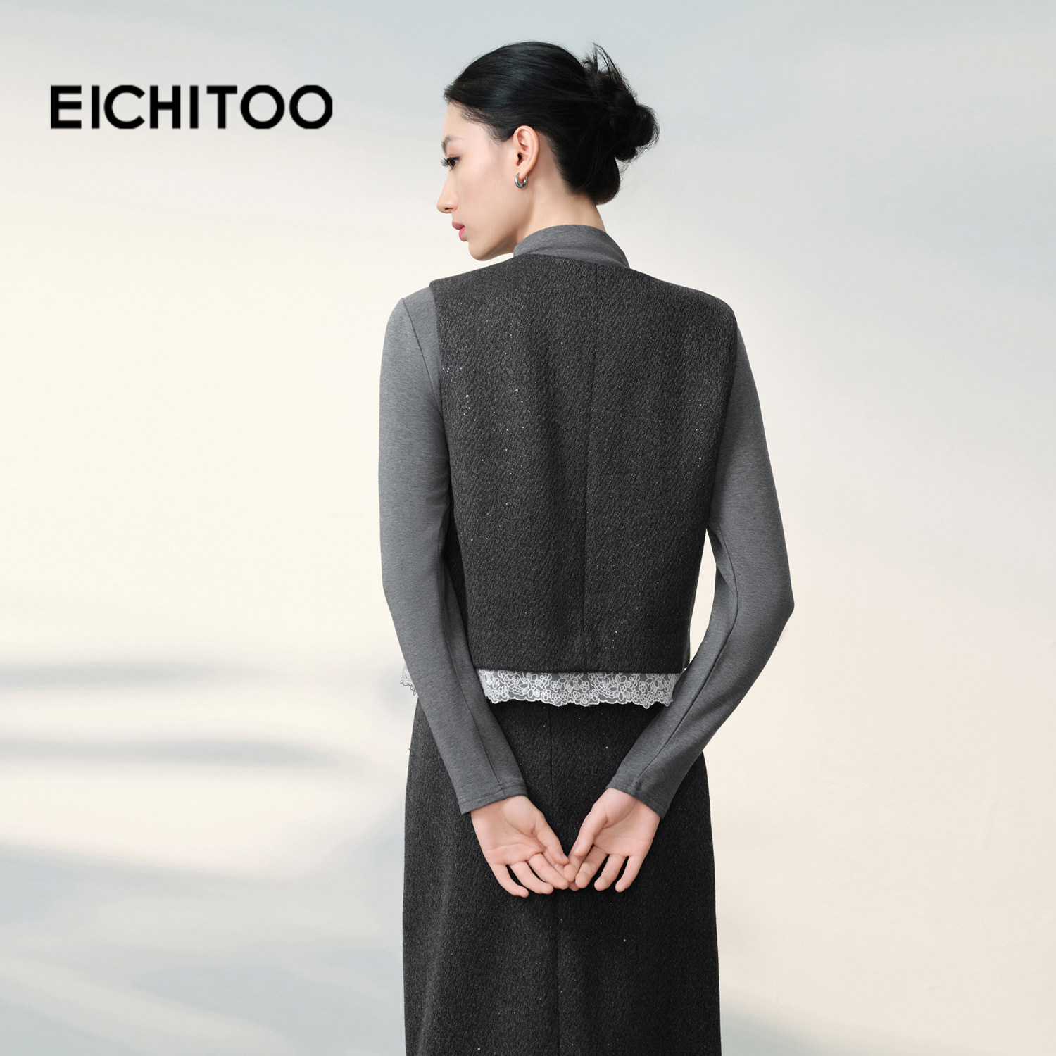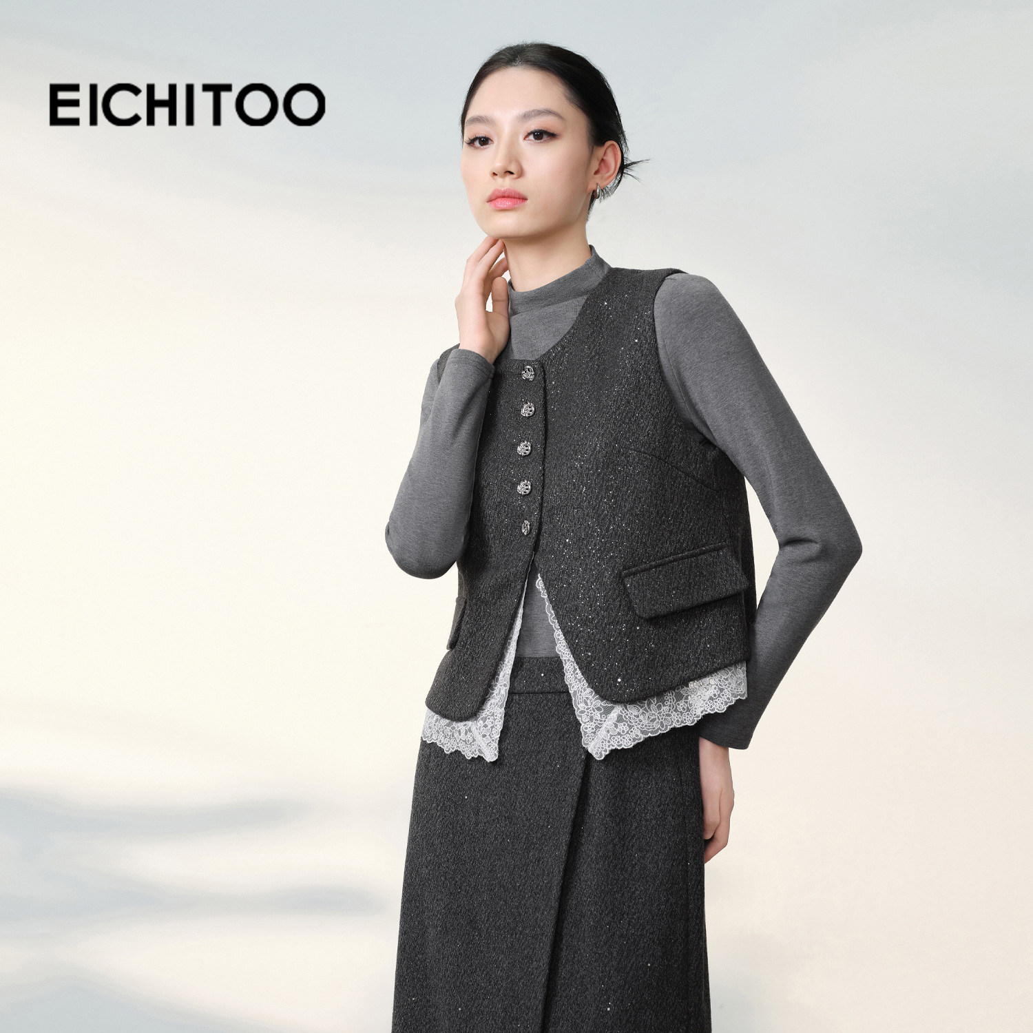 爱居兔高智气质马甲短2025年冬季新款女时尚蕾丝边叠穿马夹