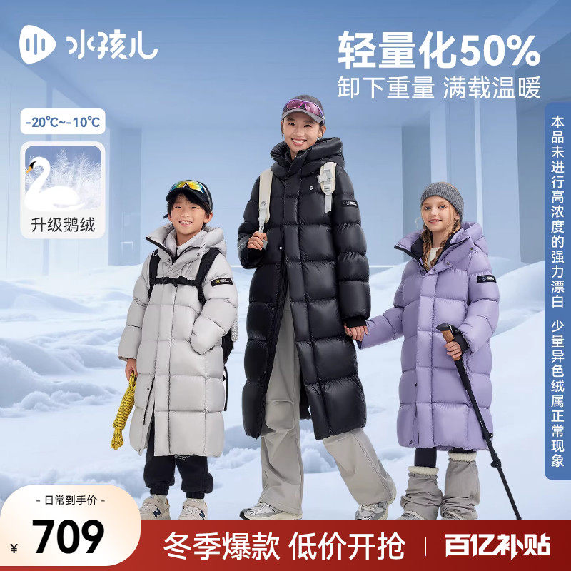 [鹅绒服加长款]水孩儿青少年羽绒外套男女童25冬季新品亲子儿童服