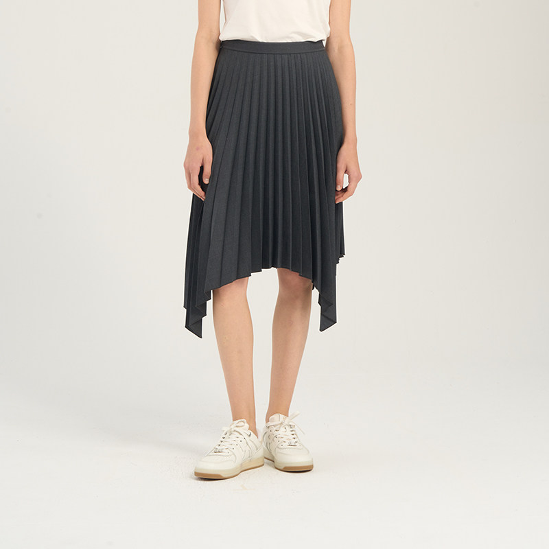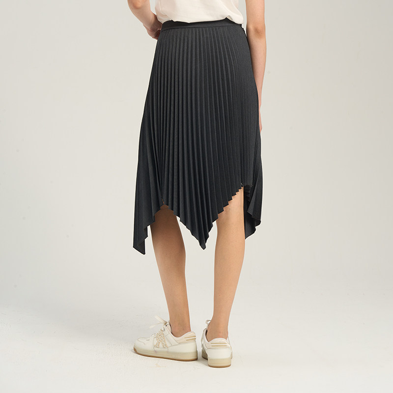 RARE威雅女裙 春夏新款半裙女士羊毛混纺灰色不规则百褶裙