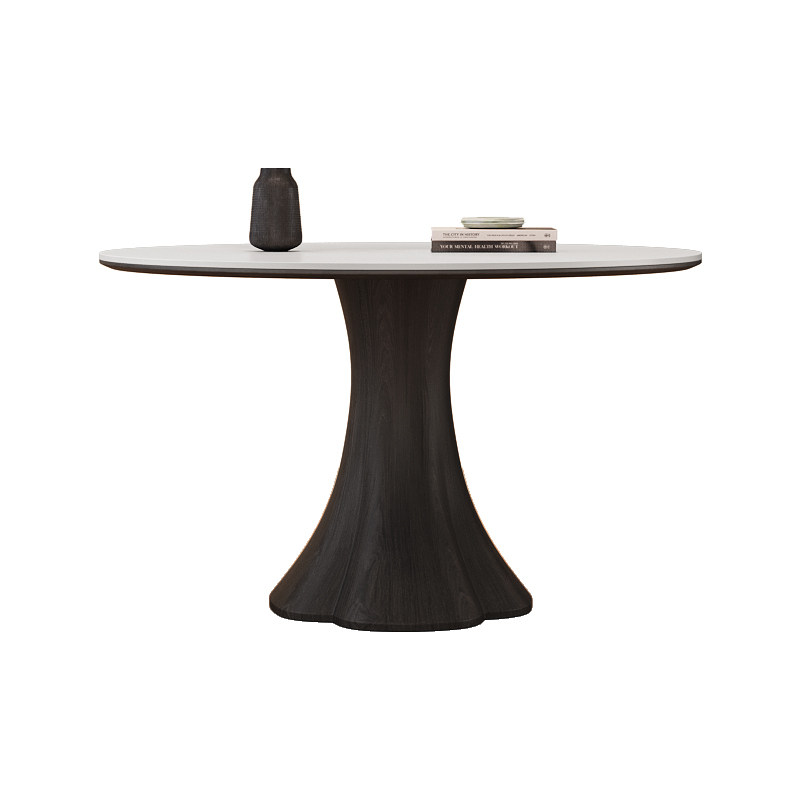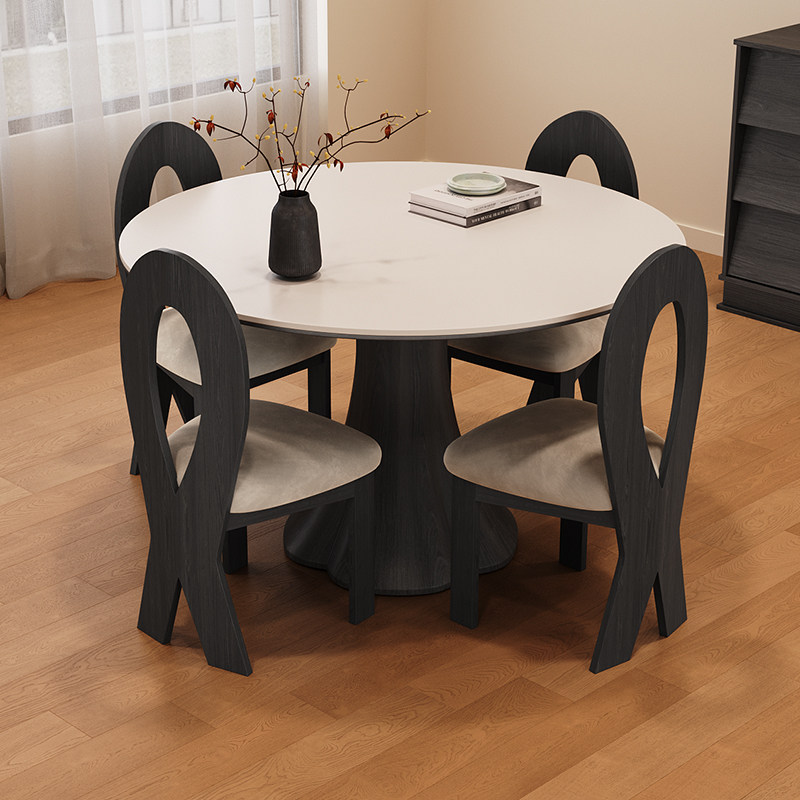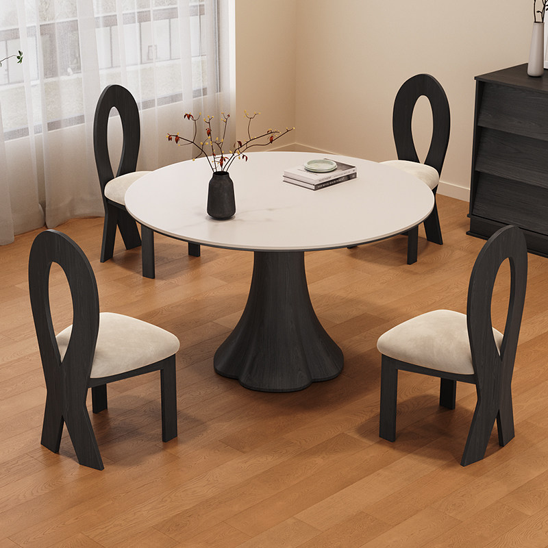 法式复古实木圆形餐桌现代简约轻奢家用小户型高级感洽谈岩板餐桌