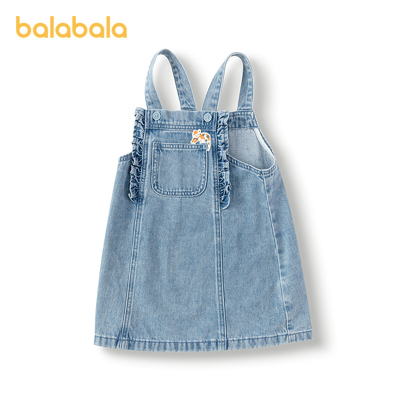 巴拉巴拉童装儿童连衣裙女童春秋装纯棉牛仔背带裙A字型裙子时髦