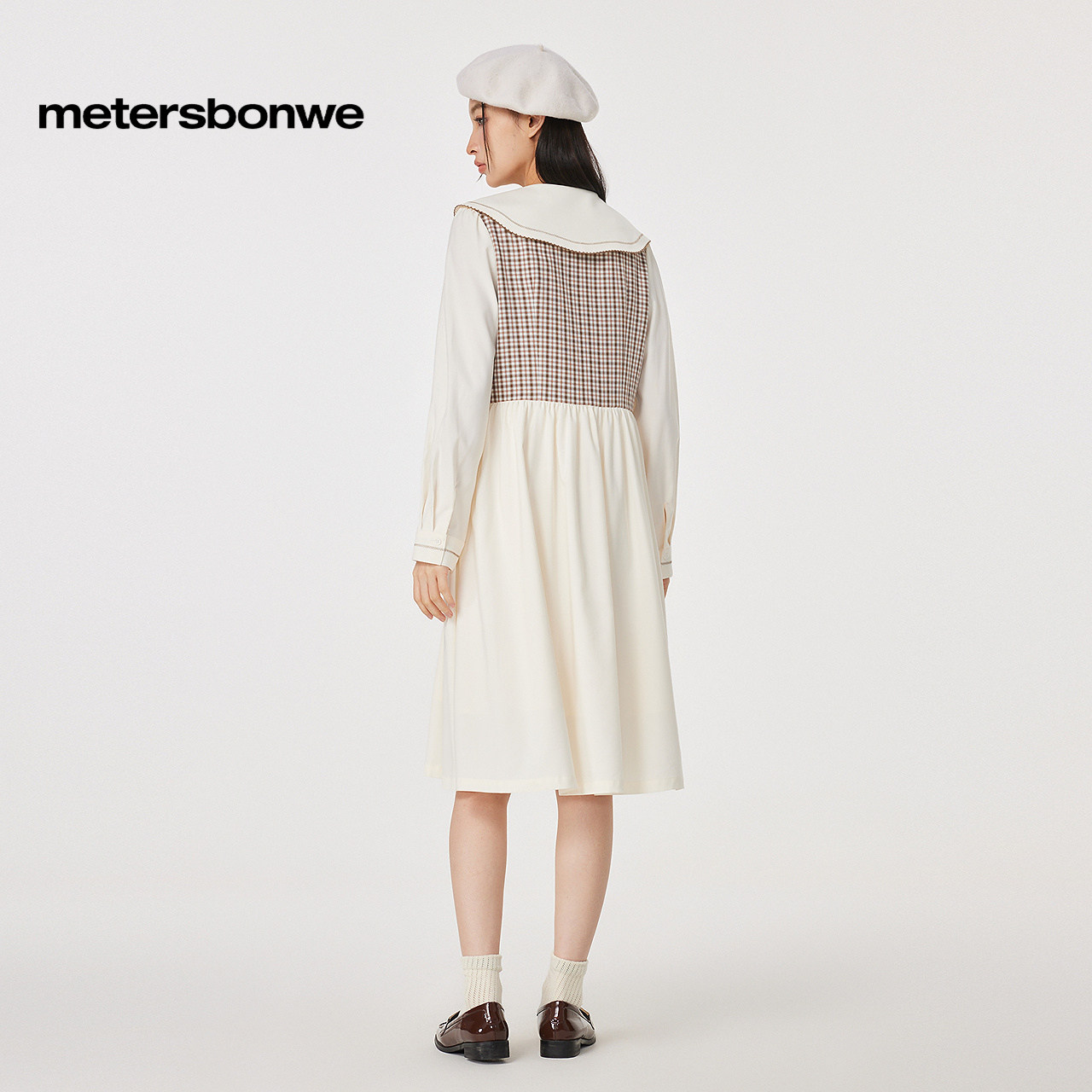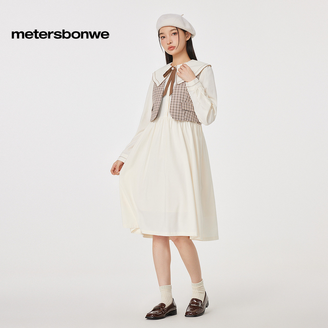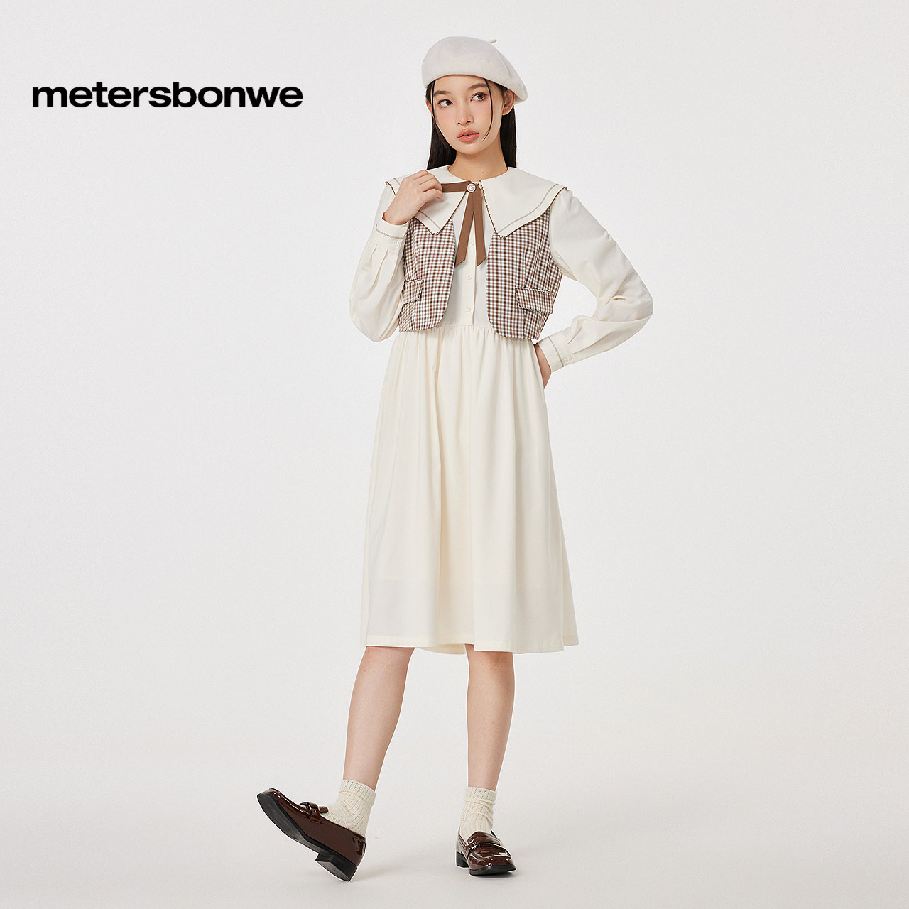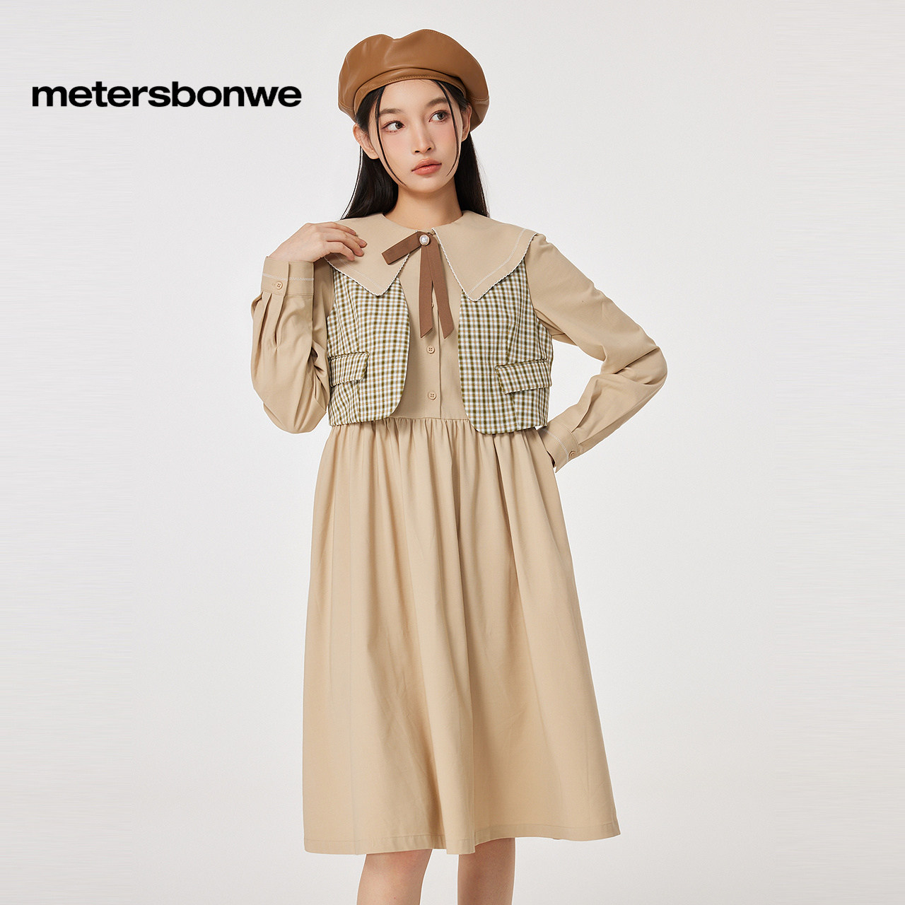美特斯邦威连衣裙女士秋冬季款舒适甜美学院风衬衫式假两件女裙子