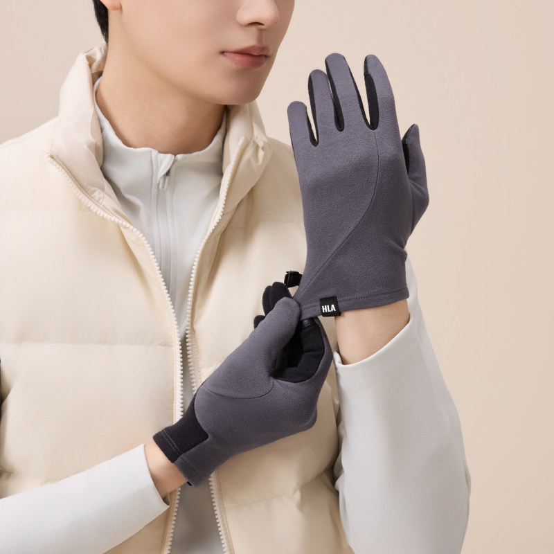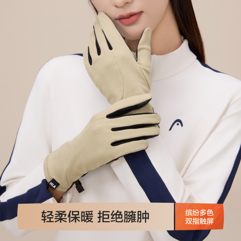 HLA/海澜之家布艺手套男女秋冬季户外骑行加绒保暖御寒分指可触屏