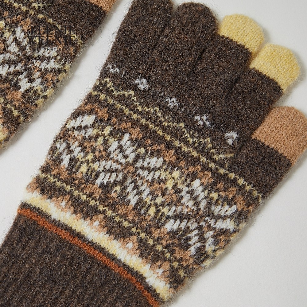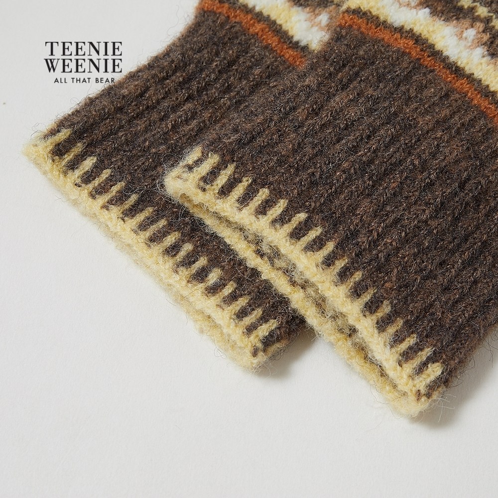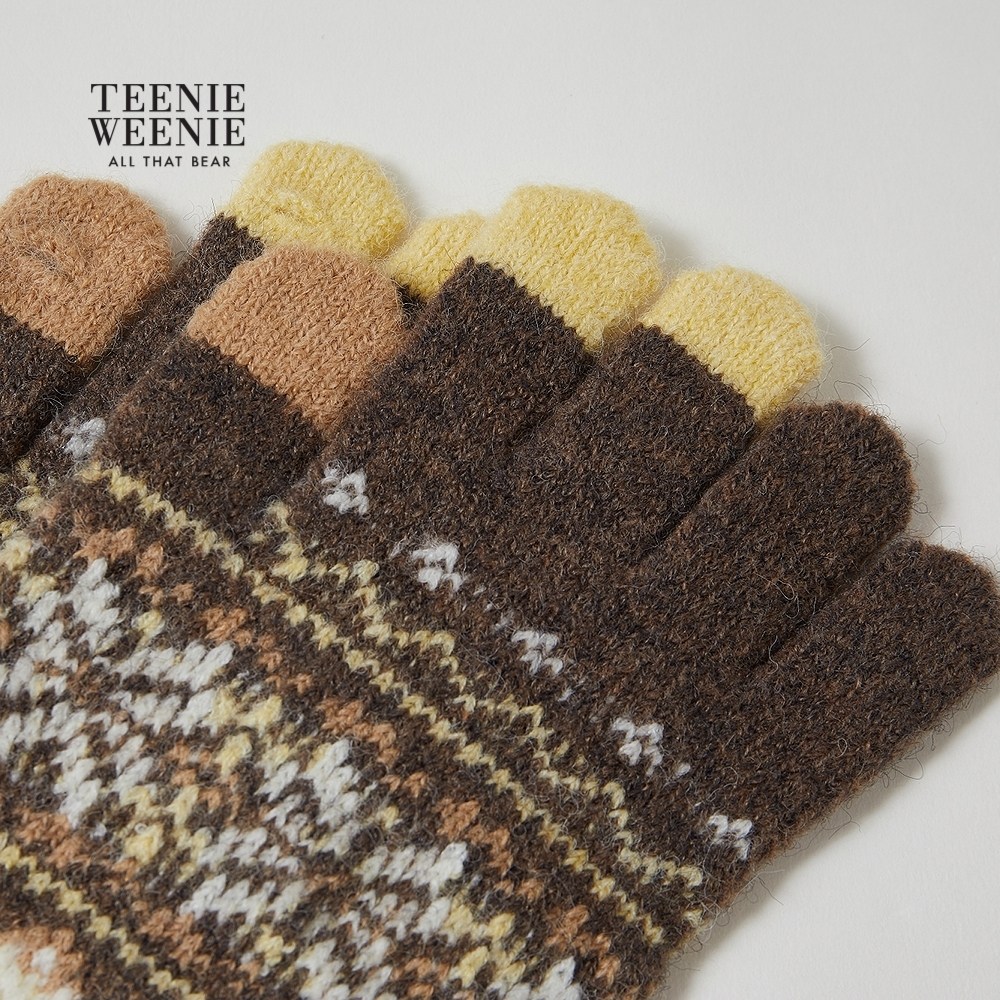 TeenieWeenie小熊女装25冬季新款柔软舒适复古费尔岛图案分指手套