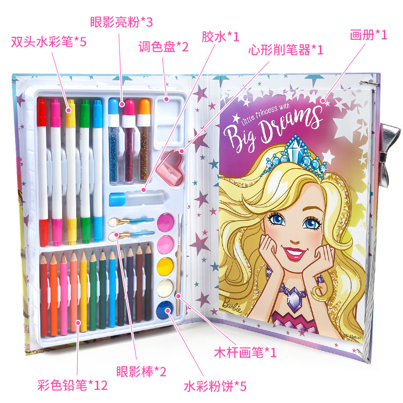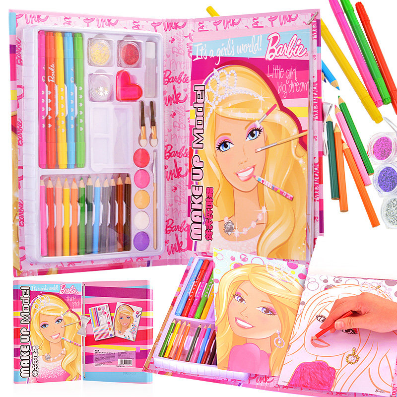 正品芭比儿童画画书宝宝涂色本套装图画本芭比公主画册幼儿填色本女孩绘画画本文具套装