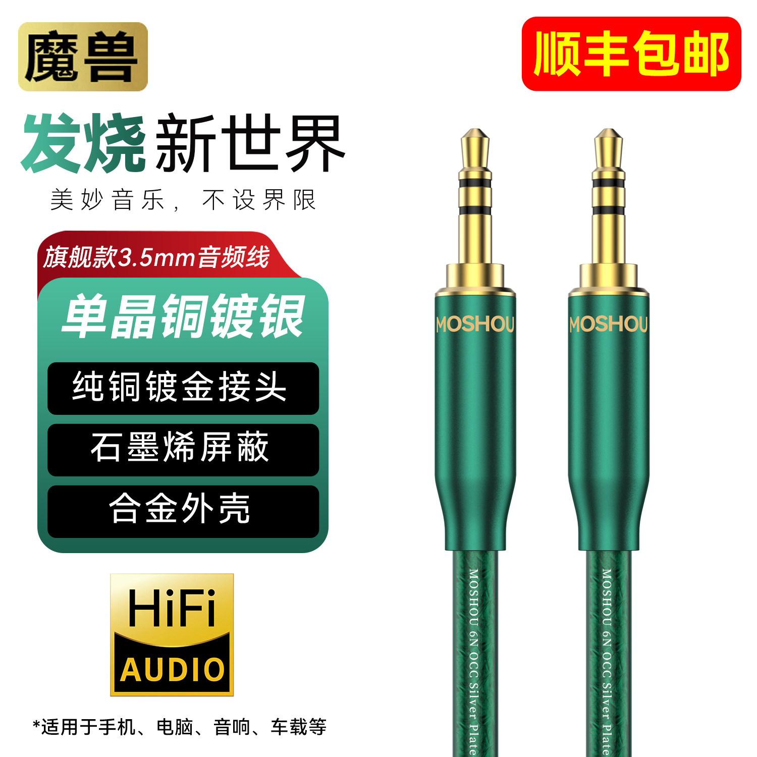 魔兽单晶铜镀银3.5mm音频线AUX车用车载公对公电脑音响手机对录线