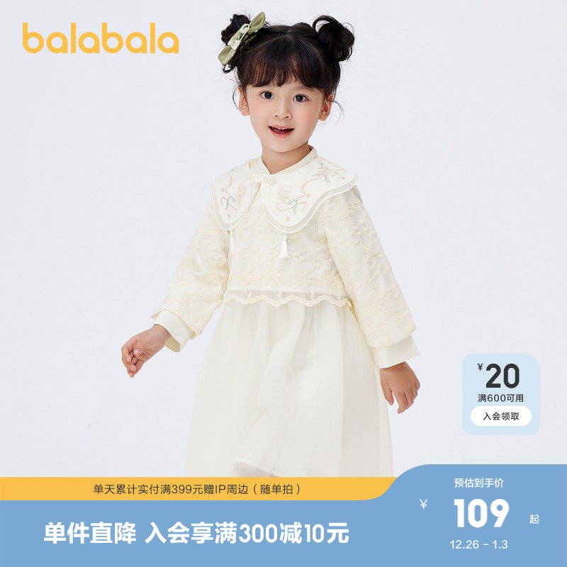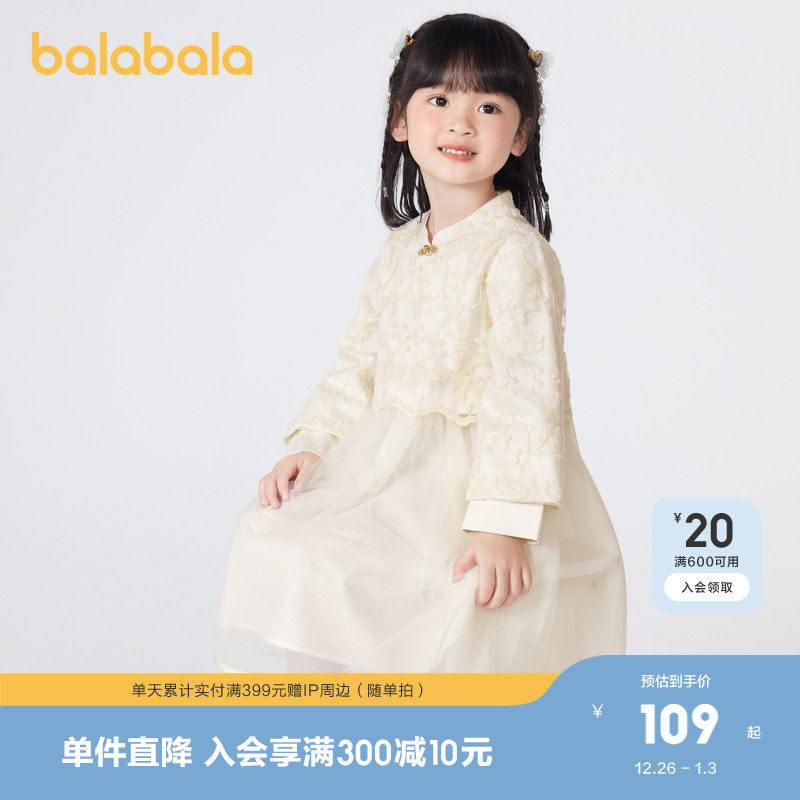 巴拉巴拉童装女童连衣裙新中式国风旗袍裙秋季裙子儿童绣花网纱裙