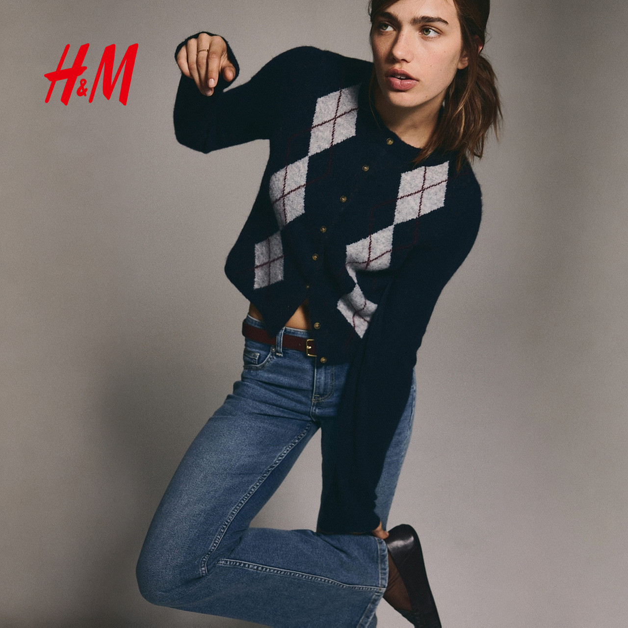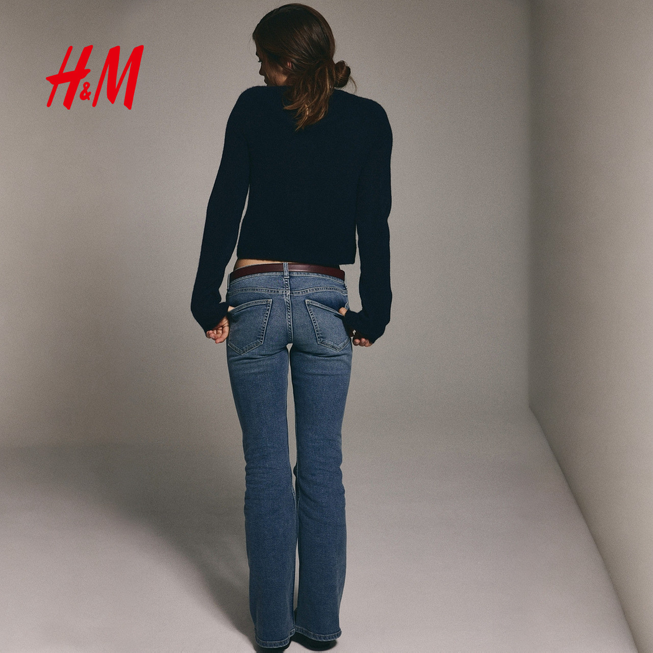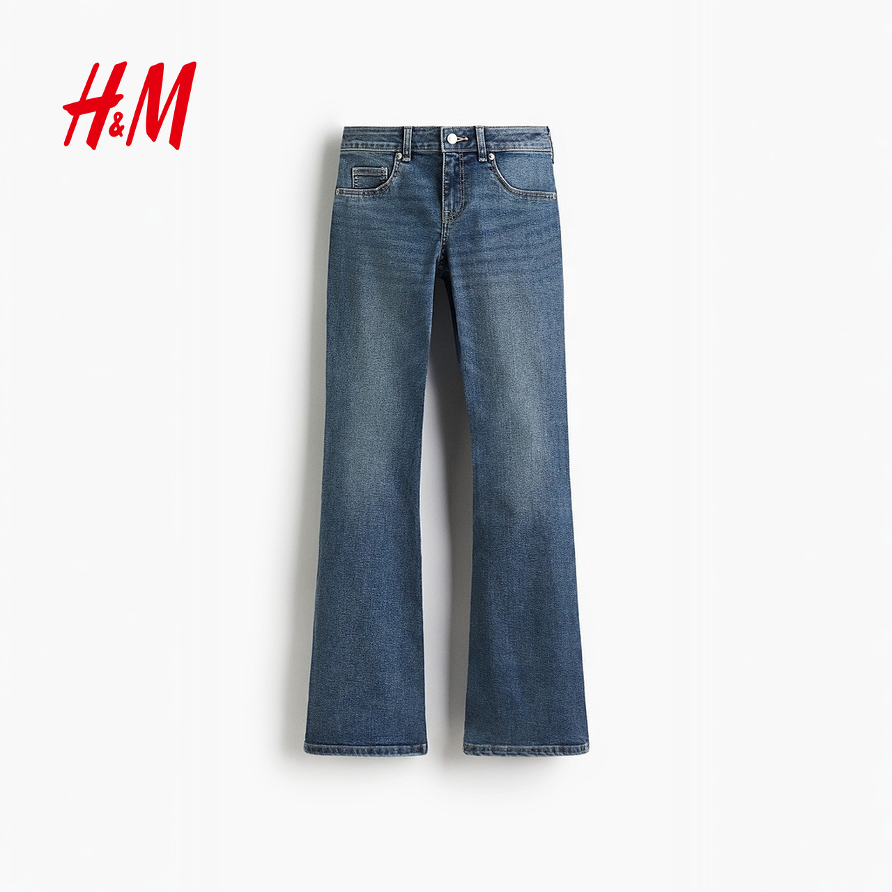 HM女装牛仔裤2025冬季新款时尚舒适低腰喇叭形修身牛仔裤1239854
