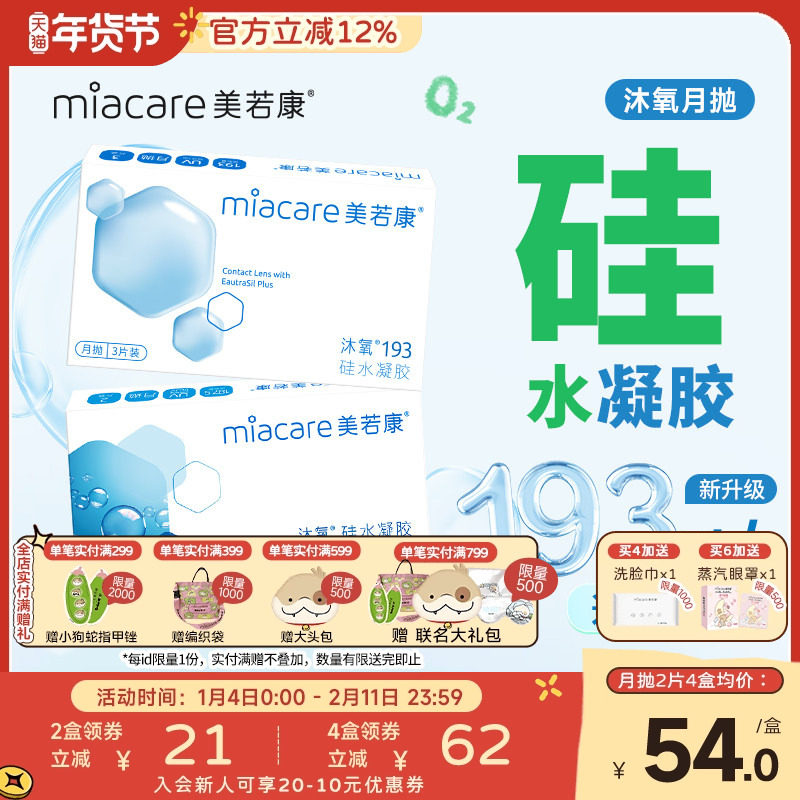 美若康硅水凝胶沐氧月抛隐形近视眼镜2/3片透明高透氧水润舒适