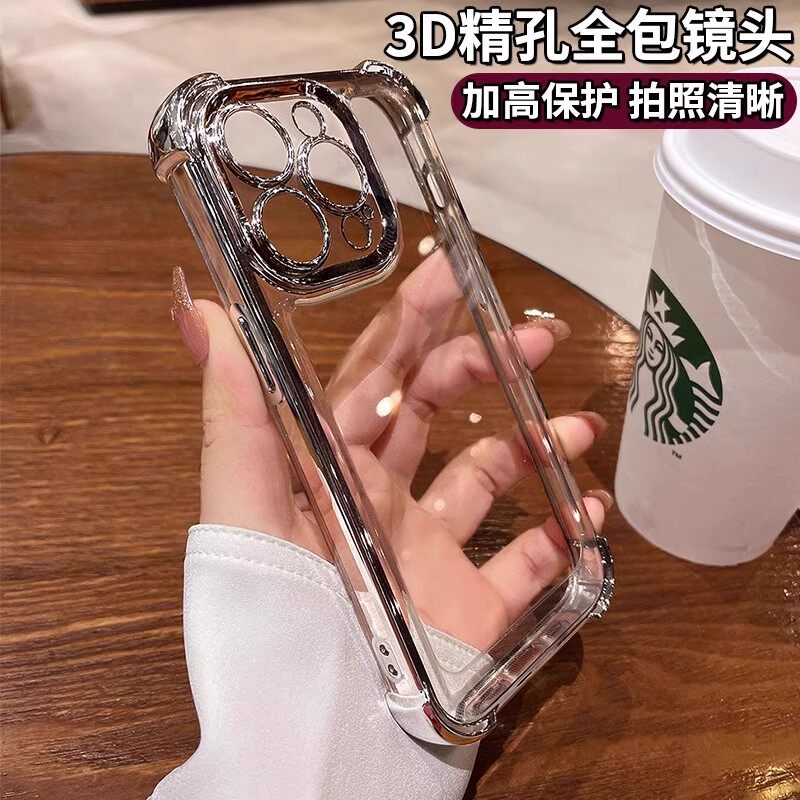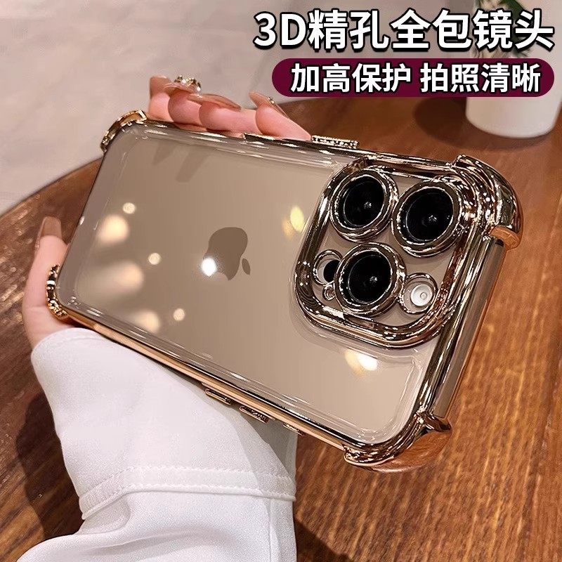 新款防摔适用苹果15promax手机壳超强带镜头膜iphone16四角气囊13pro透明硅胶12高级感14男女11pm电镀por全包
