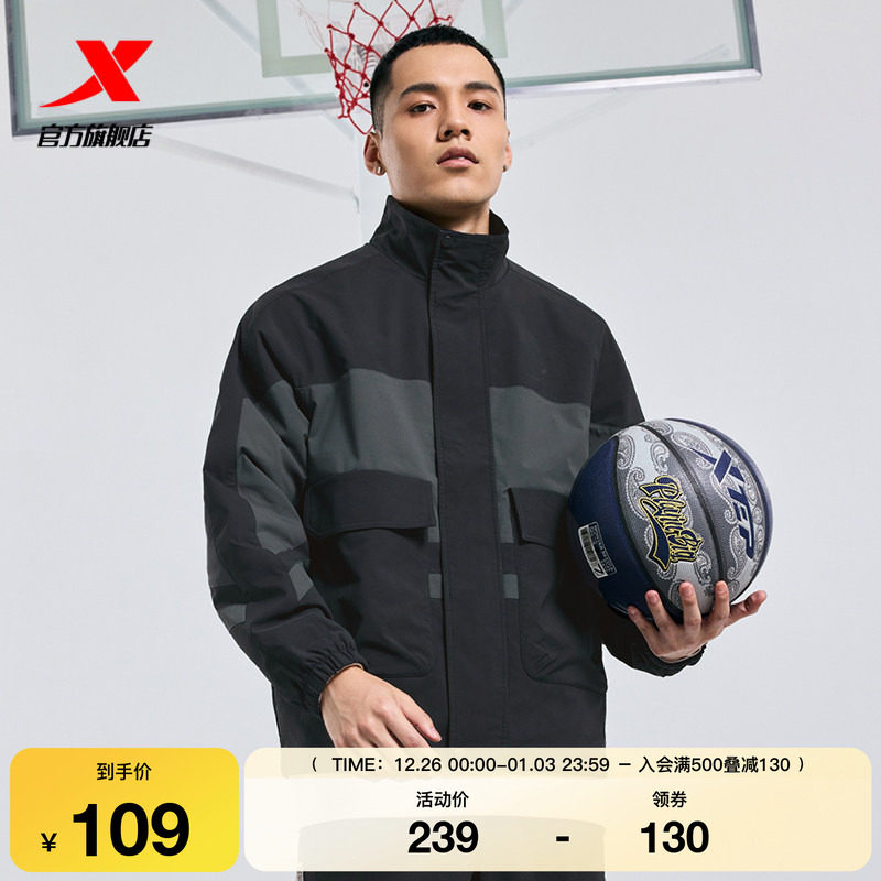 特步外套男士秋冬新款冲锋男装休闲上衣男款运动加绒防风夹克风衣