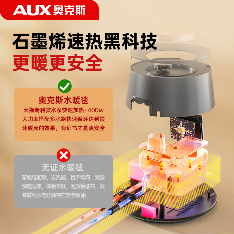 奥克斯水暖毯石墨烯电热毯2025双人水循环电褥子调温家用旗舰新款