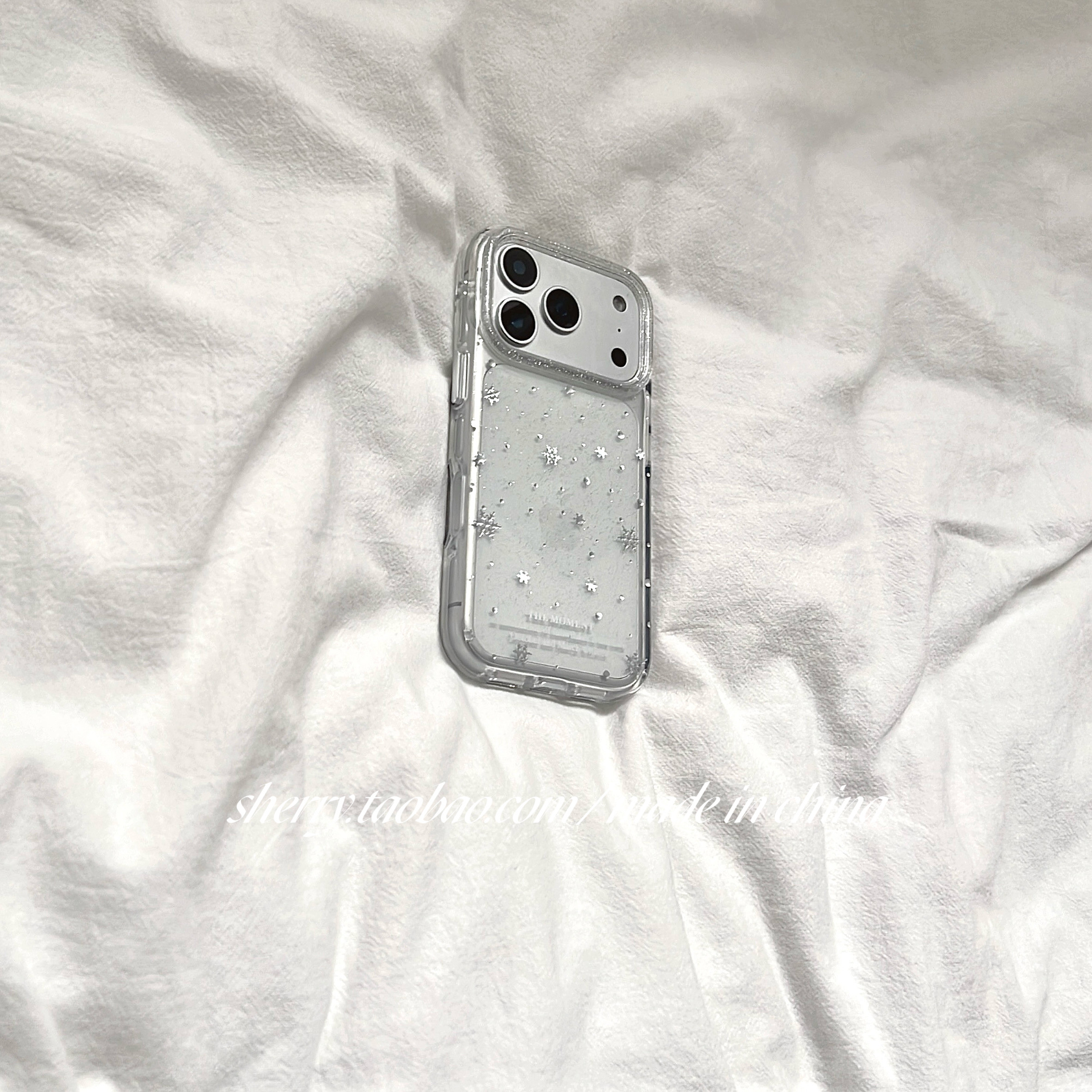 SHERRY*ins风透明细闪银色雪花适用于苹果17ProMax手机壳iPhone16Pro小众少女心15简约14小清新卡通高级冬日