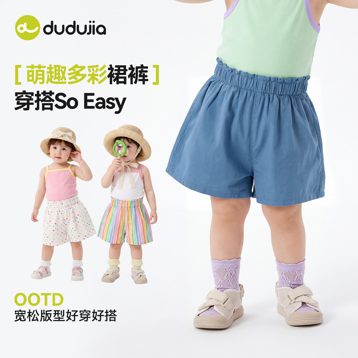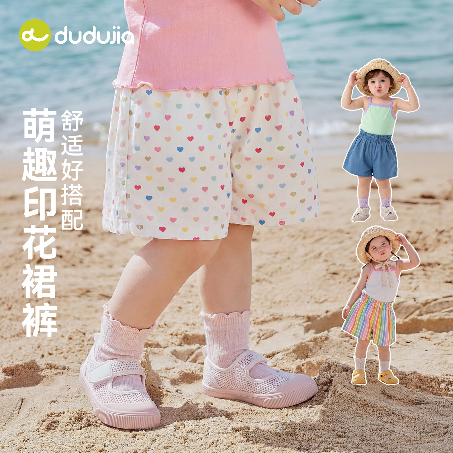 dudujia女童短裤宝宝夏季短款裙裤女孩洋气夏装儿童新款印花衣服a