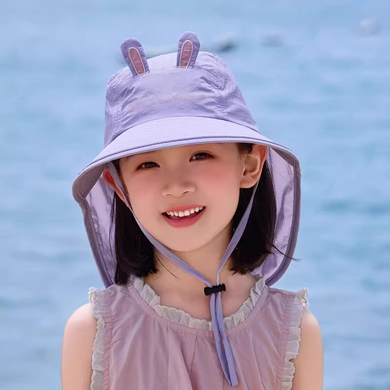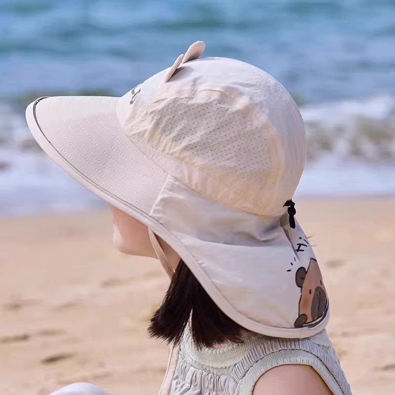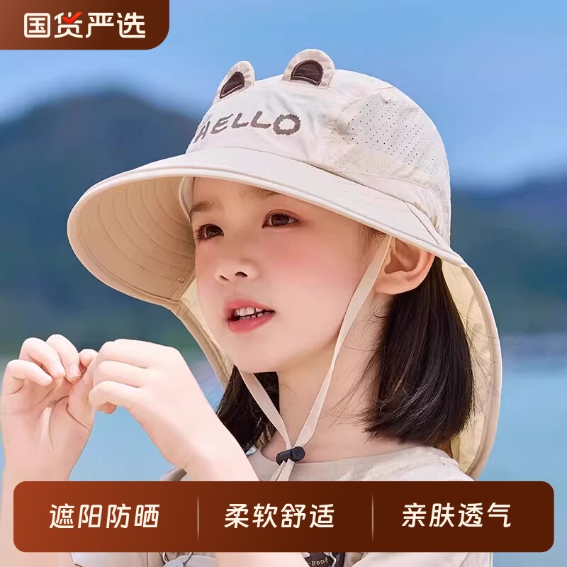 儿童帽子夏季遮阳帽男女童大檐宝宝防晒速干披肩户外渔夫太阳帽薄