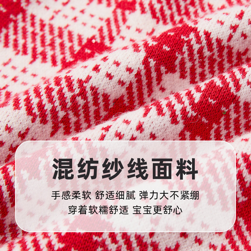 [抗菌远红外]女童连衣裙宝宝高领加绒蓬蓬网纱裙子儿童红色公主裙